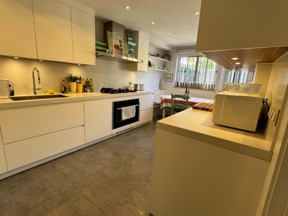 Cette maison de ville s'étend sur trois étages, auxquels s'ajoute une terrasse sur le toit, le tout avec des finitions haut de gamme. Au rez-de-chaussée, vous trouverez un vaste séjour/salle à manger s'ouvrant sur une grande véranda et un jardin privatif, une cuisine entièrement équipée et des toilettes invités. Le premier étage abrite la suite parentale, avec salle de bains privative et terrasse, ainsi que deux chambres supplémentaires, chacune avec son propre balcon, partageant une salle de bains. La terrasse sur le toit est un véritable atout, offrant un barbecue intégré et une vue imprenable sur la mer.
