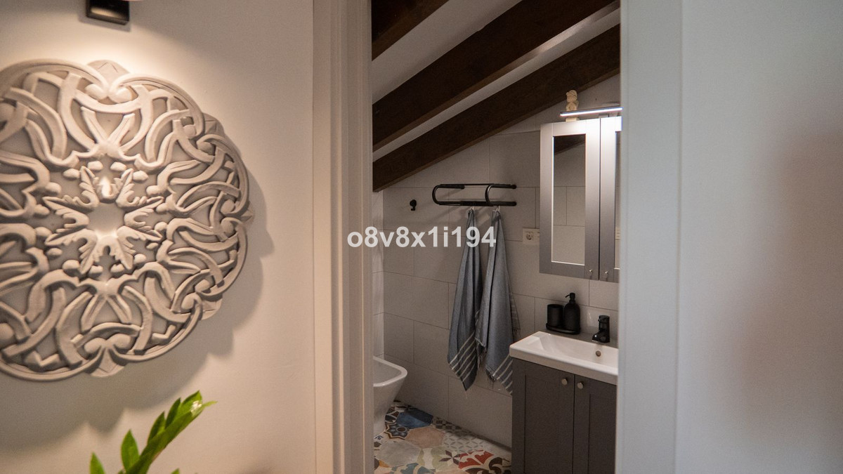 Le cœur de la maison est le lumineux séjour/salle à manger, qui impressionne par sa hauteur sous plafond et ses poutres apparentes, offrant une sensation d'espace et une authenticité rustique. À l'inverse, d'autres pièces conservent de magnifiques plafonds anciens ovales et rustiques, un détail architectural qui évoque le charme originel de la finca. La rénovation complète a été réalisée avec une élégante touche nordique, alliant la chaleur rustique à des lignes épurées et lumineuses.