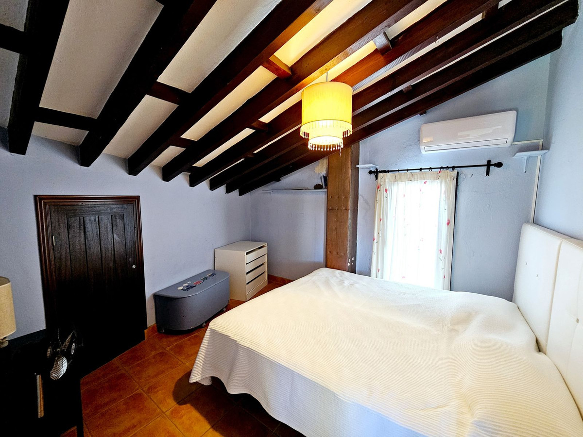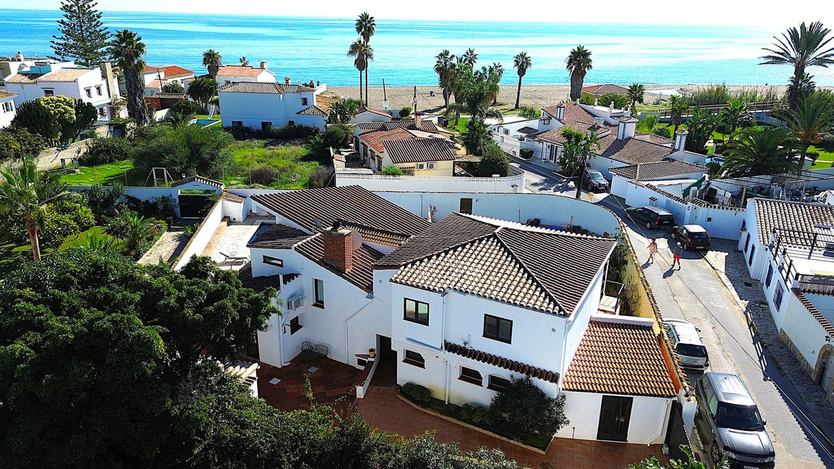 La maison principale comprend 5 chambres, 3 grandes salles de bains rénovées, 2 salons avec cheminées, une vaste cuisine ouverte sur la salle à manger, le tout réparti sur deux étages. Un appartement indépendant avec entrée séparée serait idéal pour le personnel, des adolescents ou des invités. Le terrain de 851 m² est entièrement plat, offrant ainsi un jardin parfaitement exploitable. Ce dernier abrite une très grande piscine et une pelouse, idéale pour une famille avec enfants ou animaux de compagnie. La villa est accessible par un portail automatique, et une porte secondaire au fond du jardin permet un accès plus direct à la plage. Cette propriété a conservé tout son charme andalou avec ses magnifiques poutres apparentes, ses plafonds voûtés et ses carreaux traditionnels.