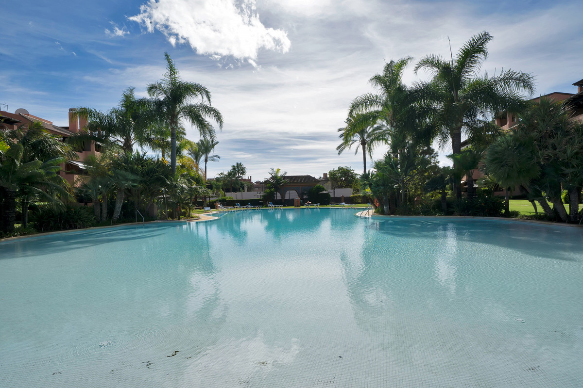 Élégant appartement de 2 chambres et 2 salles de bains situé dans l'exclusif Alhambra del Golf Phase III, l'un des complexes les plus recherchés de Guadalmina Baja.