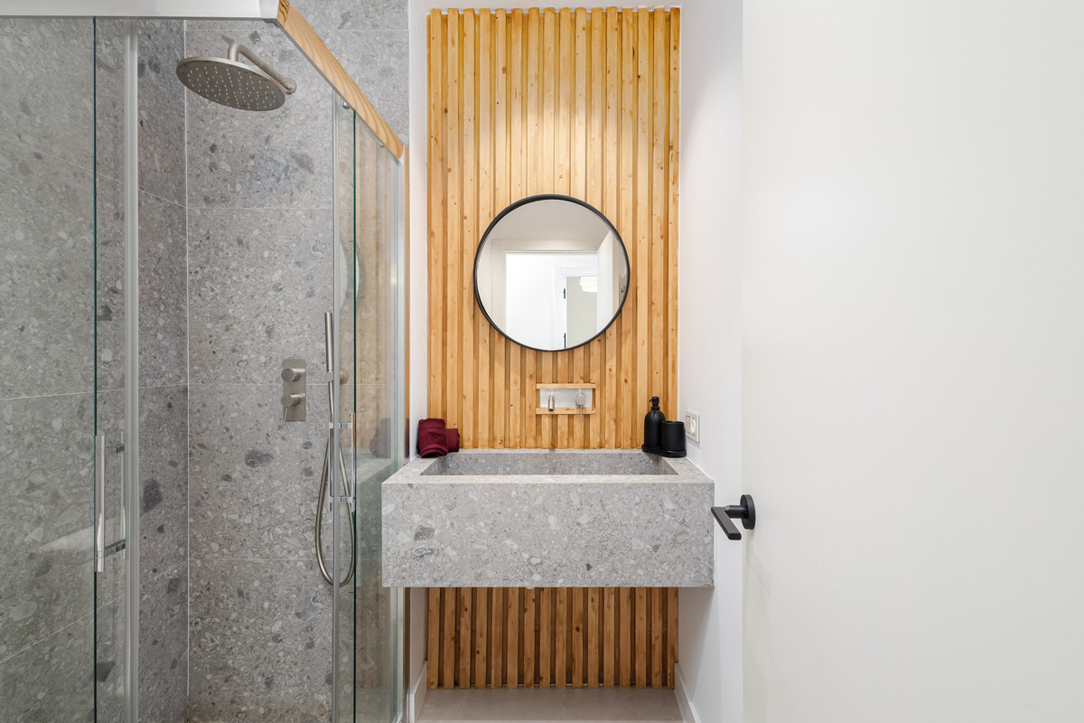 L'appartement comprend trois chambres spacieuses, dont une luxueuse suite parentale avec salle de bains privative et dressing. Les deux élégantes salles de bains sont conçues avec des matériaux haut de gamme et des finitions modernes.