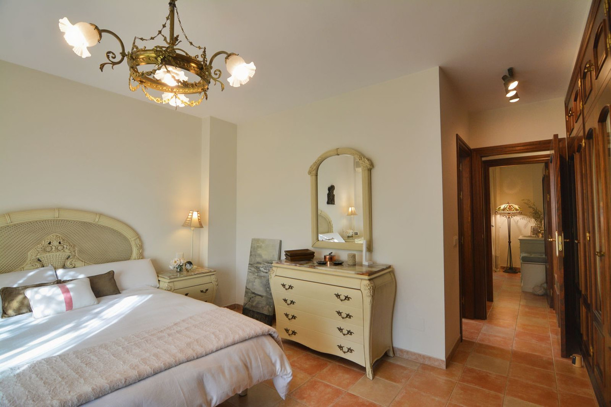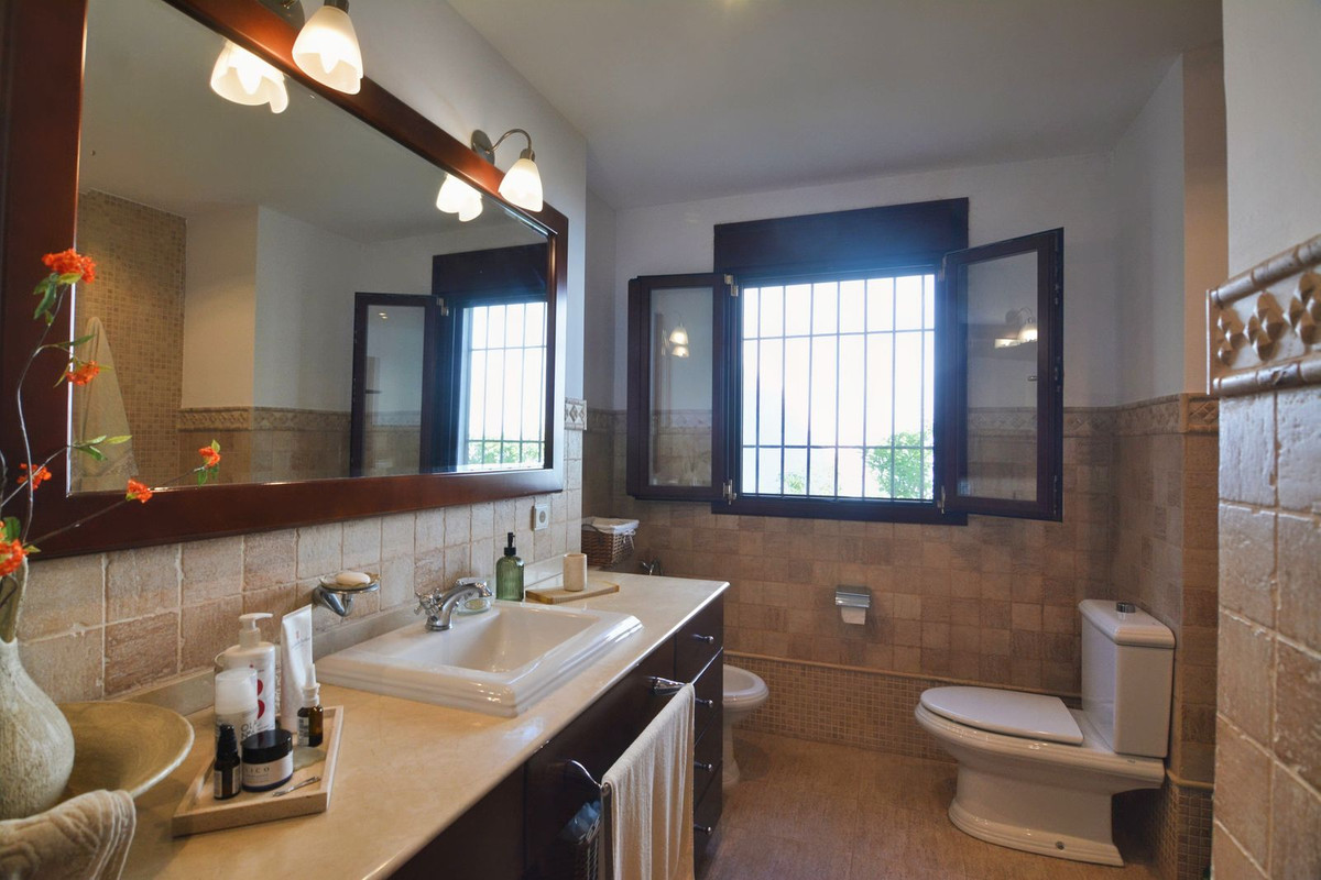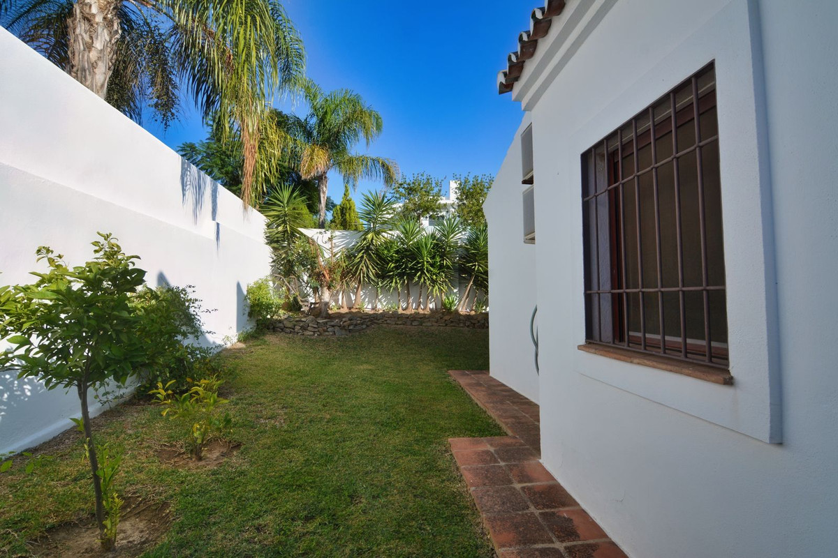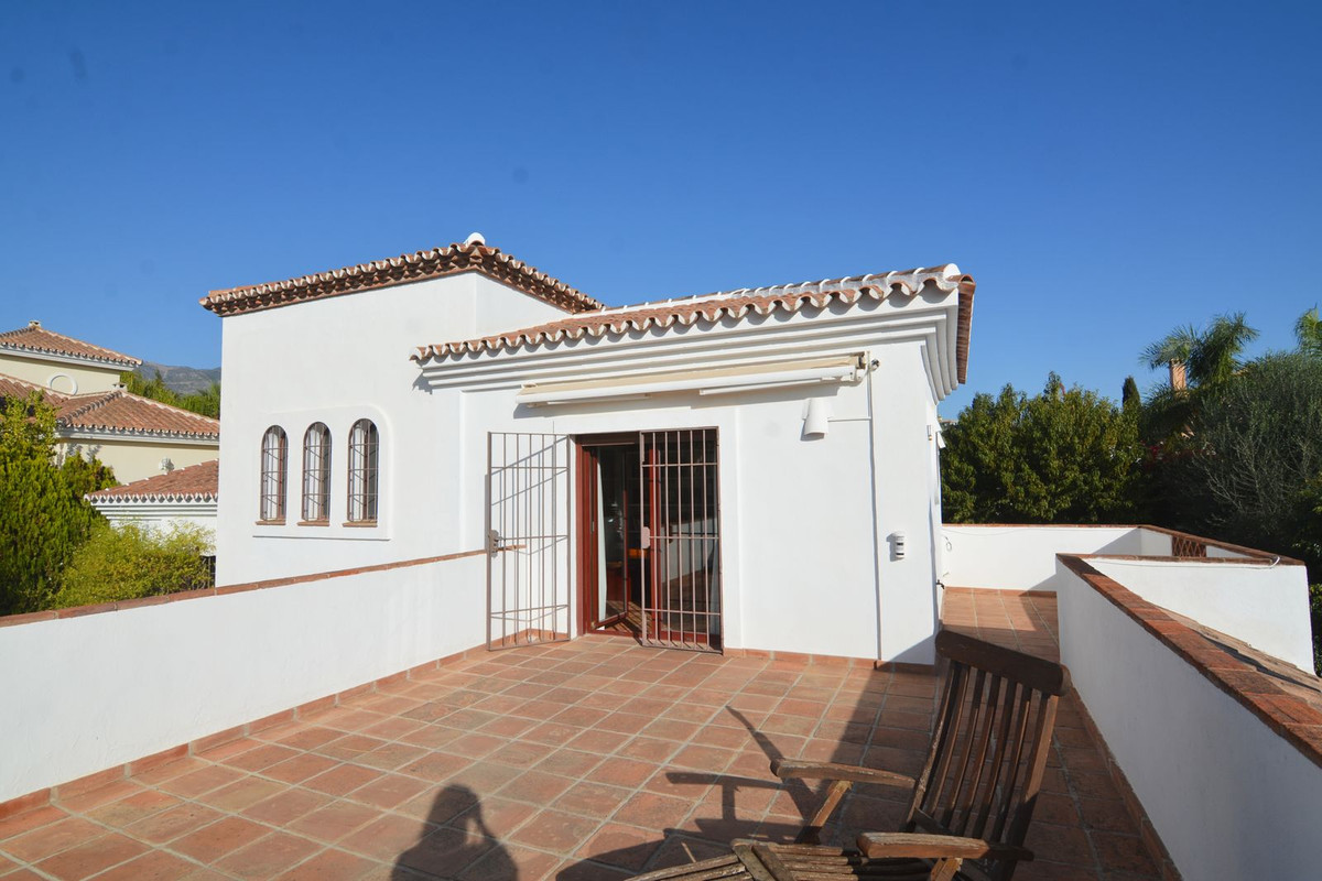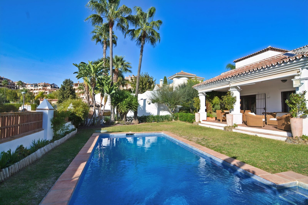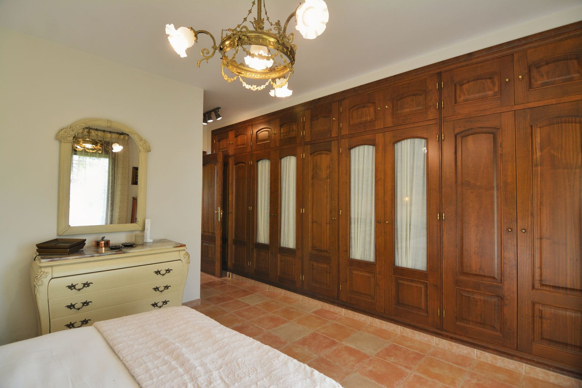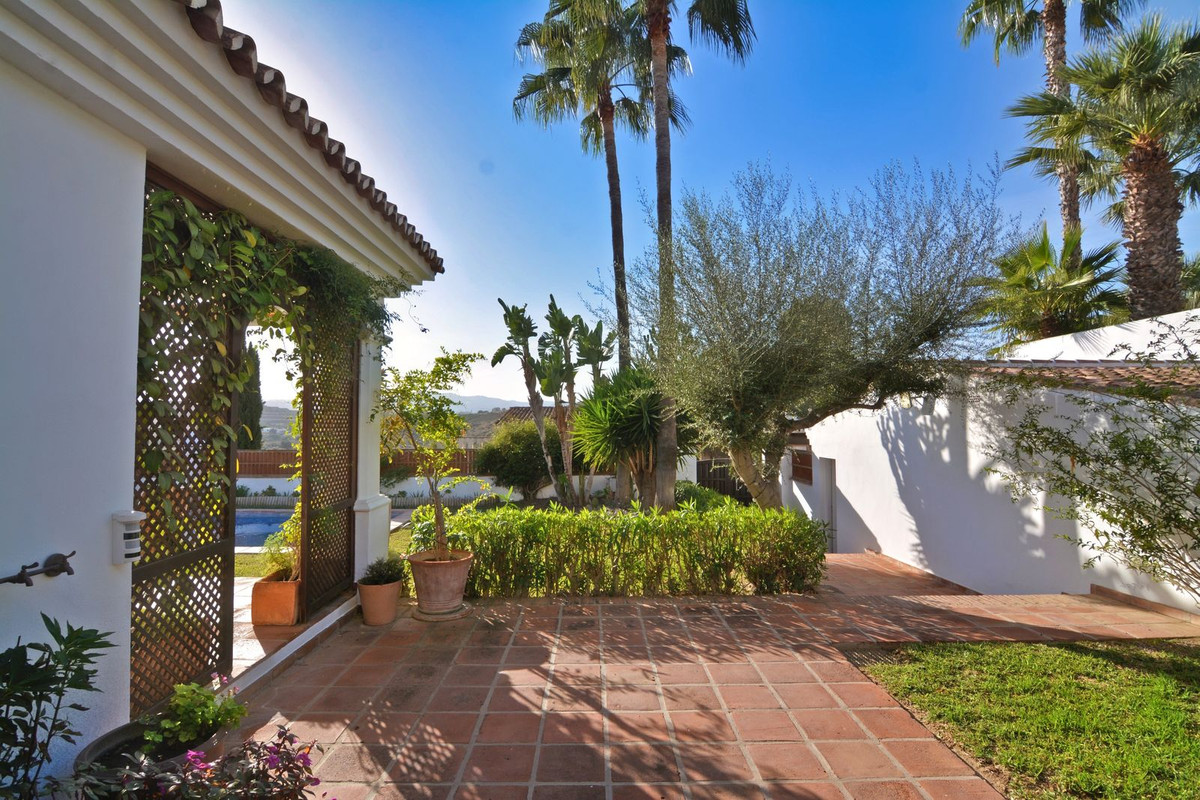 La propriété se situe sur un terrain de 858 m² avec un jardin arboré et une piscine privée, idéal pour profiter du climat ensoleillé de la Costa del Sol. Au rez-de-chaussée, un séjour spacieux et lumineux, donnant directement sur une véranda couverte, invite à la détente et aux moments conviviaux en plein air. La cuisine indépendante, grande et fonctionnelle, s'ouvre sur une charmante terrasse arrière, parfaite pour les petits-déjeuners ensoleillés. Ce niveau comprend également des toilettes invités.
