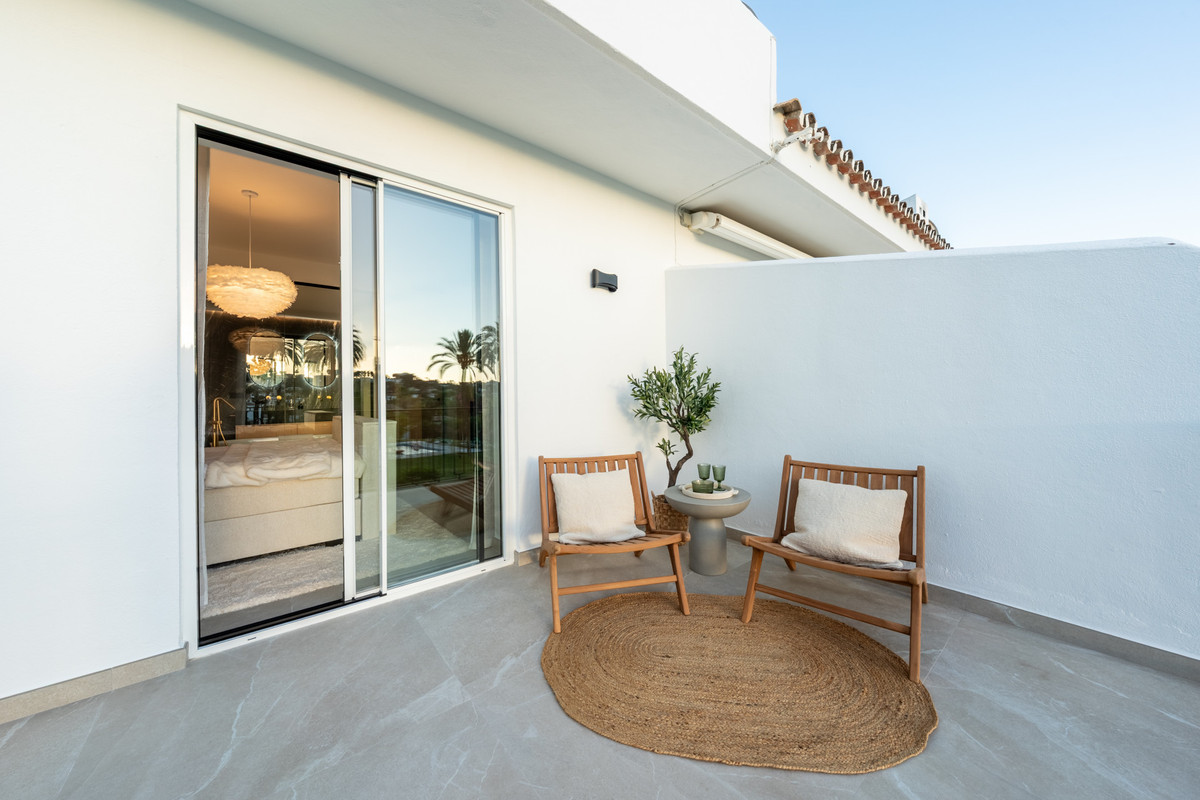 Découvrez une sophistication sans effort dans cette maison de ville de 4 chambres récemment rénovée, nichée au sein de la communauté fermée et exclusive de La Rinconada, au cœur de la Vallée du Golf de Marbella.