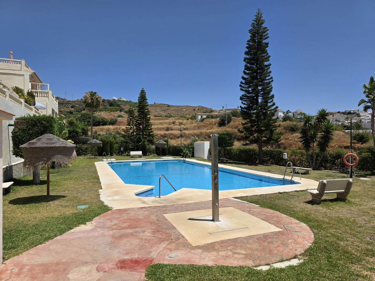 Superbe emplacement pour cette maison de ville à Torrox Costa, à proximité de la plage et de toutes les commodités. Une école publique se trouve également à quelques minutes. La maison dispose d'un patio à l'entrée, d'une grande terrasse à l'arrière et d'une vaste terrasse sur le toit offrant une vue imprenable sur la mer et la côte. Elle comprend deux chambres, une salle de bain complète, une cuisine ouverte entièrement équipée, un coin repas et un grand séjour donnant accès à la terrasse privative et au jardin commun. Orientée sud-ouest, elle bénéficie d'une vue magnifique sur la côte. Cette maison fait partie de la résidence Torrox Park, qui propose des jardins et une grande piscine. À environ 30 minutes de l'aéroport et du centre-ville de Malaga et à seulement 10 minutes du célèbre village de Nerja. La surface habitable se répartit comme suit : 70 m² habitables, 16 m² de terrasse, 55 m² de terrasse sur le toit et 4 m² d'escalier.