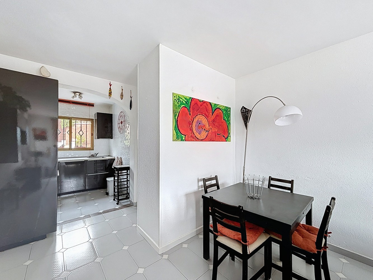 Découvrez cette charmante maison de ville de 2 chambres située dans un quartier paisible et bien desservi de Nerja. Lumineuse et aérée, elle offre un espace de vie ouvert comprenant salon et salle à manger, qui se prolonge harmonieusement vers une cuisine entièrement équipée, idéale au quotidien comme pour recevoir. La propriété inclut une salle de bain moderne, la climatisation pour un confort optimal toute l'année et de nombreuses finitions soignées. Profitez d'un petit jardin privatif et d'une terrasse ensoleillée avec une vue imprenable sur la mer, des espaces parfaits pour se détendre ou savourer un repas en plein air. Les résidents ont également accès à une agréable piscine commune, un havre de fraîcheur lors des chaudes journées d'été. À quelques pas seulement des commerces, restaurants et de toutes les commodités, cette maison de ville bénéficie d'une situation idéale, alliant praticité et tranquillité. Que vous recherchiez une résidence principale, un pied-à-terre pour les vacances ou un investissement, cette charmante propriété à Nerja a tout pour vous plaire. Nous serons ravis de vous présenter prochainement ce bien d'exception, en personne ou par visite virtuelle. Car ce monde est unique, à l'image de notre Axarquía. En Andalousie. Sur la Costa del Sol. Ici, sous le soleil…