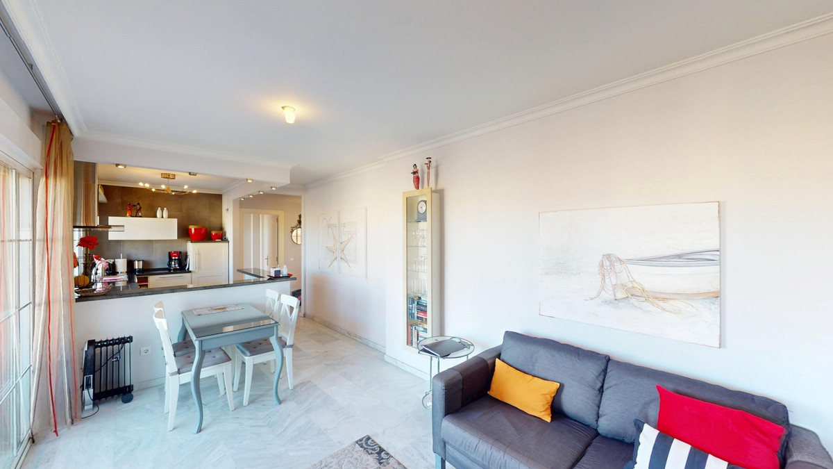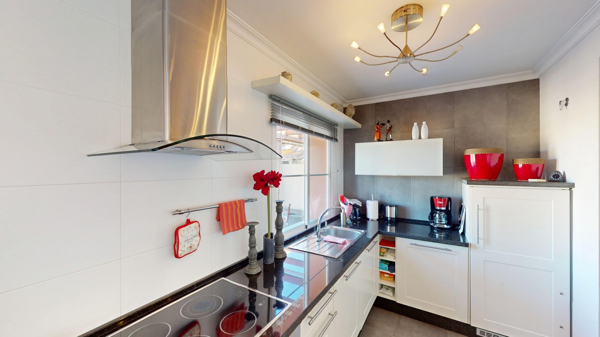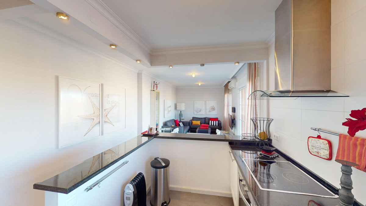 Bienvenue dans ce charmant penthouse situé dans le village côtier de Mezquitilla, un parfait mélange de confort, de fonctionnalité et d'art de vivre méditerranéen. Cet appartement bien agencé se distingue par ses deux terrasses privatives offrant toutes deux une vue imprenable sur la mer et un espace généreux pour se détendre, dîner ou recevoir en plein air. Le salon, lumineux et aéré, communique harmonieusement avec la cuisine et s'ouvre directement sur l'une des terrasses, créant ainsi une agréable sensation d'espace entre intérieur et extérieur. L'une des deux chambres bénéficie également d'un accès direct à la terrasse, baignant l'espace de lumière naturelle et profitant de la brise marine. Les deux chambres sont équipées de placards intégrés, et l'appartement est entièrement climatisé pour un confort optimal toute l'année. La cuisine, compacte et élégante, est dotée de meubles blancs épurés, d'un plan de travail noir et d'appareils électroménagers en inox. L'agencement ouvert et la décoration soigneusement choisie, aux tons chauds et rehaussés de touches de couleur, créent une atmosphère accueillante et contemporaine. La salle de bains, moderne et bien équipée, comprend une baignoire-douche, une vasque et des équipements de qualité qui rendent l'espace à la fois fonctionnel et agréable. Un parking privé et un cellier séparé offrent un confort supplémentaire, et la résidence bien entretenue comprend une piscine commune idéale pour se rafraîchir lors des chaudes journées d'été. Situé à deux pas de la plage, des restaurants, des commerces et autres commodités, ce penthouse est idéal pour ceux qui recherchent une résidence principale, une maison de vacances paisible ou un investissement sûr sur la Costa del Sol. Nous sommes ravis de pouvoir vous présenter prochainement ce bien d'exception, en personne ou par visite virtuelle. Car ce monde est unique, à l'image de notre Axarquía. En Andalousie. Sur la Costa del Sol. Ici, sous le soleil…
