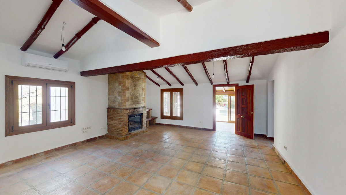 Cette ravissante villa espagnole, située à Viñuela, dans la province de Malaga, offre un parfait mélange de charme traditionnel et de confort moderne. De plain-pied, elle s'étend sur 167 m² et comprend trois chambres, dont une spacieuse suite parentale de 13,9 m², ainsi que deux salles de bains. Dès l'entrée, on est séduit par son atout majeur : un magnifique sol en terre cuite qui s'étend sur toute la surface, créant une ambiance espagnole authentique et harmonieuse. Les pièces à vivre se caractérisent par leurs hauts plafonds mansardés aux poutres apparentes, qui ajoutent une touche rustique et un cachet unique. Le cœur de la maison est sans conteste le salon, dont la pièce maîtresse est une superbe cheminée en pierre. De grandes fenêtres et des portes-fenêtres, présentes dans cette pièce comme dans les chambres, laissent entrer une abondante lumière naturelle tout en offrant des vues pittoresques sur le paysage environnant. La cuisine présente un mélange harmonieux de design traditionnel et contemporain. Les appareils électroménagers modernes et les élégants meubles contrastent avec les poutres apparentes du plafond, créant un espace culinaire à la fois fonctionnel et esthétique. Les salles de bains, bien que peu détaillées sur les photos, semblent avoir été modernisées. Des rangements astucieusement intégrés sont présents dans toute la maison, notamment des placards en bois encastrés dans les chambres qui préservent le charme rustique de l'ensemble. La propriété dispose également de deux patios, offrant de ravissants espaces extérieurs pour la détente et les réceptions. L'un des atouts de cette villa réside dans le soin apporté aux détails décoratifs, tels que les frises de carrelage ornementées dans les couloirs et les salles de bains, qui ajoutent une touche d'élégance espagnole traditionnelle à des intérieurs par ailleurs sobres et raffinés. À l'extérieur, la villa bénéficie d'une magnifique piscine et d'un charmant espace extérieur, idéal pour profiter du climat méditerranéen. En somme, cette villa de Malaga offre une atmosphère chaleureuse et accueillante, alliant avec brio les éléments architecturaux espagnols traditionnels au confort moderne, pour créer un lieu de vie exceptionnel. Nous sommes ravis de pouvoir vous présenter prochainement cette propriété de rêve, en personne ou par visite virtuelle. Car ce monde est unique, à l'image de notre Axarquía. En Andalousie. Sur la Costa del Sol. Ici, sous le soleil…