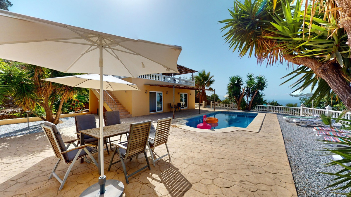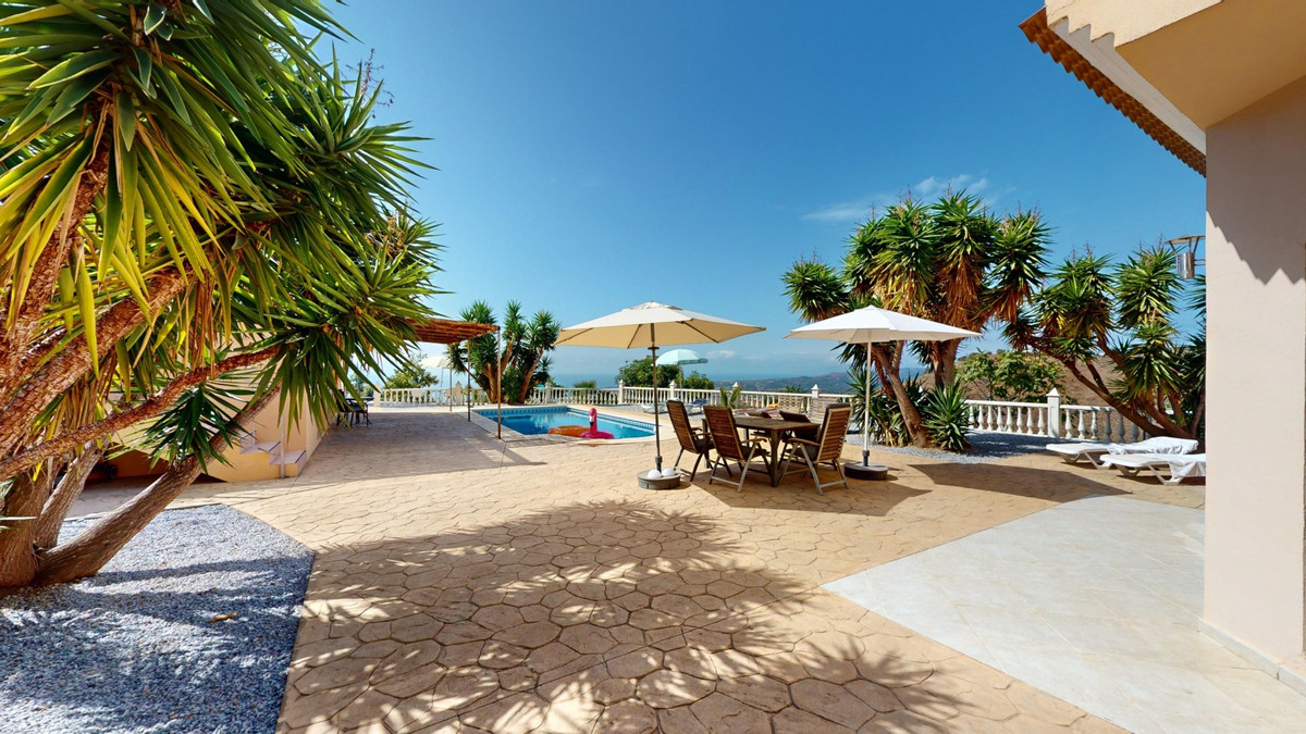 Découvrez l'incarnation même de la vie méditerranéenne avec cette finca exclusive à Algarrobo, située sur la magnifique Costa del Sol. Nichée dans une intimité absolue, cette propriété unique offre une vue panoramique à couper le souffle sur la Méditerranée scintillante et la campagne andalouse environnante. Avec une surface habitable totale de près de 190 m² et un terrain de 2 445 m², cette finca promet luxe et tranquillité. La propriété comprend cinq chambres spacieuses et trois salles de bains modernes, idéales pour recevoir famille et amis. Le cœur de la maison est un élégant salon avec une cheminée chaleureuse, donnant sur une cuisine américaine contemporaine équipée d'appareils haut de gamme. À l'extérieur, vous trouverez une piscine accueillante située entre la maison principale et les dépendances, offrant un espace parfait pour se détendre ou recevoir tout en profitant de la vue imprenable. Pour les amoureux de la nature, le vaste terrain offre l'opportunité idéale de cultiver votre propre paradis tropical, qu'il s'agisse d'une manguiererie, d'une plantation d'avocatiers ou d'orangers, comme vous en avez pu voir à la télévision. Cette finca offre un parfait mélange de luxe, d'intimité et de charme andalou, à quelques minutes seulement des plages de la Costa del Sol et de toutes les commodités. Bien plus qu'une simple propriété, c'est un art de vivre. Imaginez-vous vous réveiller chaque matin au son des vagues et sous la douce chaleur du soleil espagnol. Explorez la galerie photos ou effectuez une visite virtuelle 3D pour apprécier la beauté et la sérénité de cette demeure unique. Si vous rêvez d'une vie ensoleillée, cette finca à Algarrobo vous attend. Contactez-nous dès aujourd'hui pour organiser une visite privée et faire de ce coin de paradis andalou votre chez-vous.