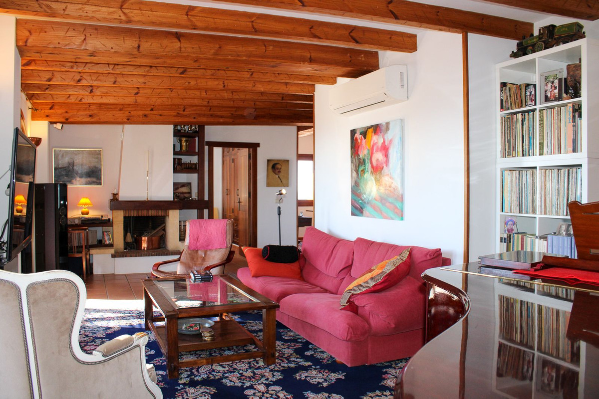 Grand séjour avec cheminée, donnant accès à une vaste terrasse à l'avant de l'appartement. De là, on accède également aux trois chambres et aux deux salles de bains ; l'une des chambres est une suite parentale avec dressing.