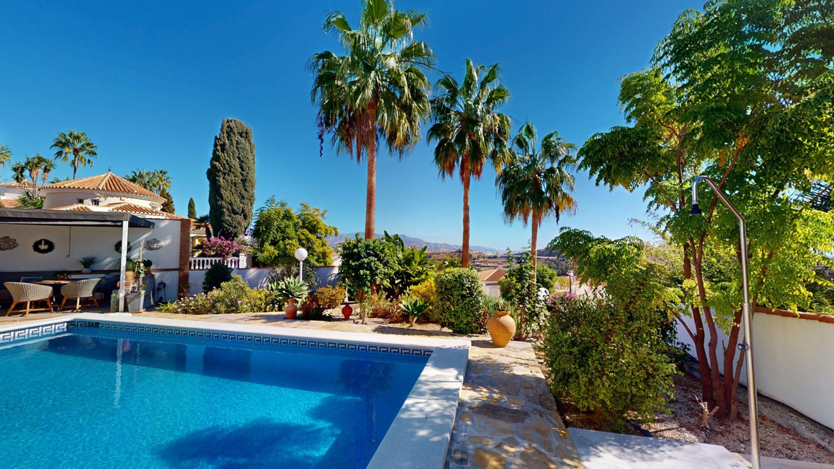 Découvrez un monde où luxe et tranquillité se conjuguent dans cette magnifique villa individuelle, située dans le quartier résidentiel paisible d'El Capitán, près de Torre del Mar et d'Almayate, sur la côte est de Malaga. Son emplacement est idéal pour ceux qui recherchent calme et intimité tout en restant proches des commodités. En quelques minutes seulement, vous rejoindrez les plages d'Almayate et de Torre del Mar, où vous trouverez de charmants restaurants, des boutiques et des promenades animées en bord de mer. La ville de Malaga et l'aéroport sont à seulement 35 minutes en voiture. Nichée sur un terrain privé de 811 m², la villa offre 310 m² d'espace de vie élégant, entouré d'un jardin facile d'entretien, clos d'un mur pour une intimité et une sécurité optimales. Un portail privé permet l'accès aux véhicules, et l'espace extérieur comprend une piscine étincelante, une vaste terrasse couverte pour se détendre à l'ombre, et un charmant coin salon sous une coupole, parfait pour savourer un verre ou un bon livre. À l'intérieur, la maison impressionne par ses espaces généreux et sa luminosité naturelle. Le hall d'entrée mène à un garage double avec espace de rangement supplémentaire. Au rez-de-chaussée, vous trouverez un vaste séjour avec un coin salon attenant et de larges baies vitrées s'ouvrant sur la piscine et le jardin, ainsi qu'une salle de bains et une chambre idéale pour les invités. À l'étage, le cœur de la maison se dévoile : un espace lumineux et décloisonné réunissant la cuisine, la salle à manger et le séjour. La lumière naturelle inonde la pièce à travers de grandes fenêtres, créant une atmosphère chaleureuse et accueillante, propice à la détente en famille comme aux réceptions élégantes. La cuisine entièrement équipée dispose d'élégants placards en bois, d'un plan de travail en granit et offre une vue sur le jardin. Depuis le séjour, vous accédez à un grand balcon offrant une vue imprenable sur la mer Méditerranée. Cet étage comprend également deux chambres, une salle de bains spacieuse et des toilettes séparées. Une terrasse donnant sur la rue est accessible depuis ce niveau ou par un escalier extérieur, offrant un espace extérieur supplémentaire pour se réunir ou profiter de soirées paisibles. Au dernier étage, une terrasse sur le toit couronne la villa, offrant une vue panoramique sur la mer, les montagnes et la campagne environnante – un lieu idéal pour admirer les couchers de soleil et la sérénité des soirées andalouses. Cette villa allie élégance, confort et charme méditerranéen : un véritable havre de paix où chaque jour est une invitation au voyage. Nous serions ravis de vous présenter prochainement cette propriété de rêve, que ce soit en personne ou par le biais d’une visite virtuelle. Car ce monde est unique, à l’image de notre Axarquía. En Andalousie. Sur la Costa del Sol. Ici, la vie est douce et ensoleillée.