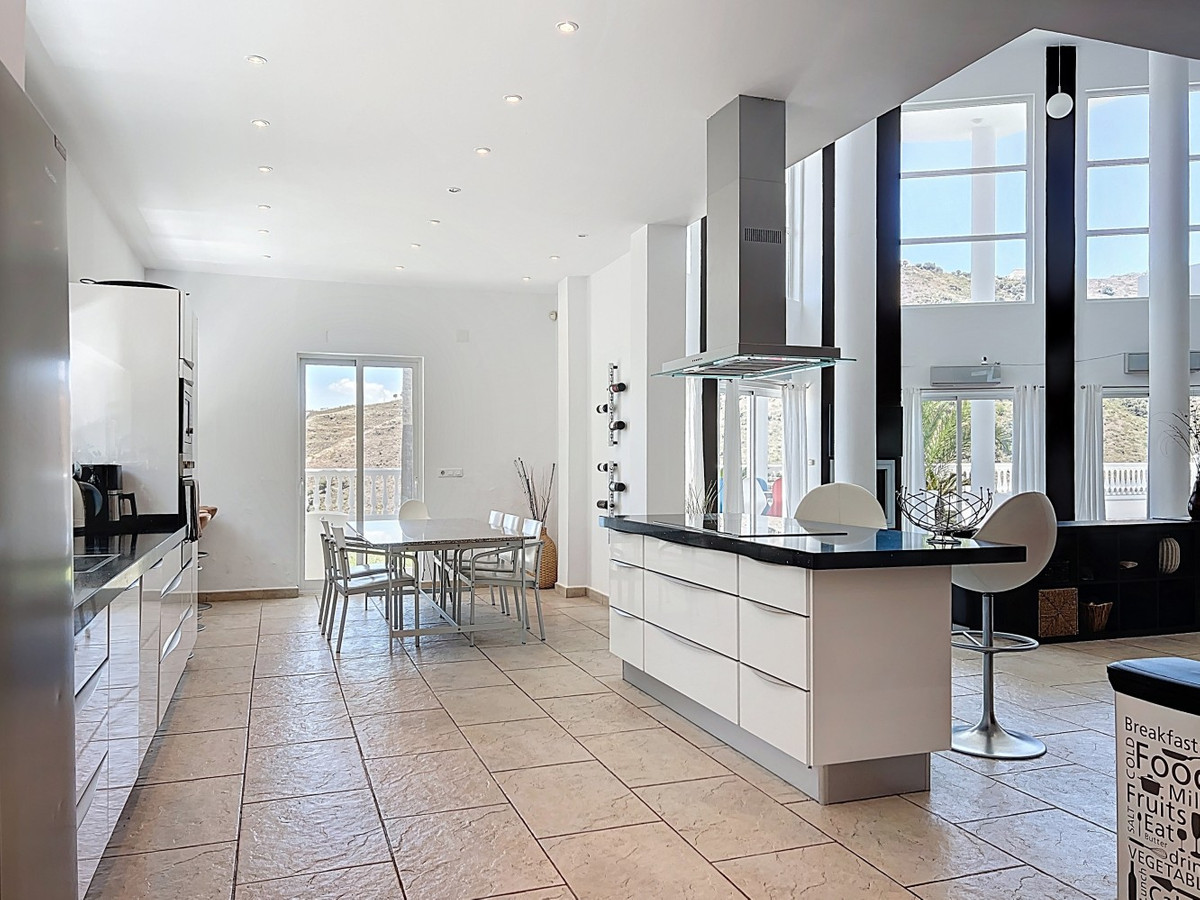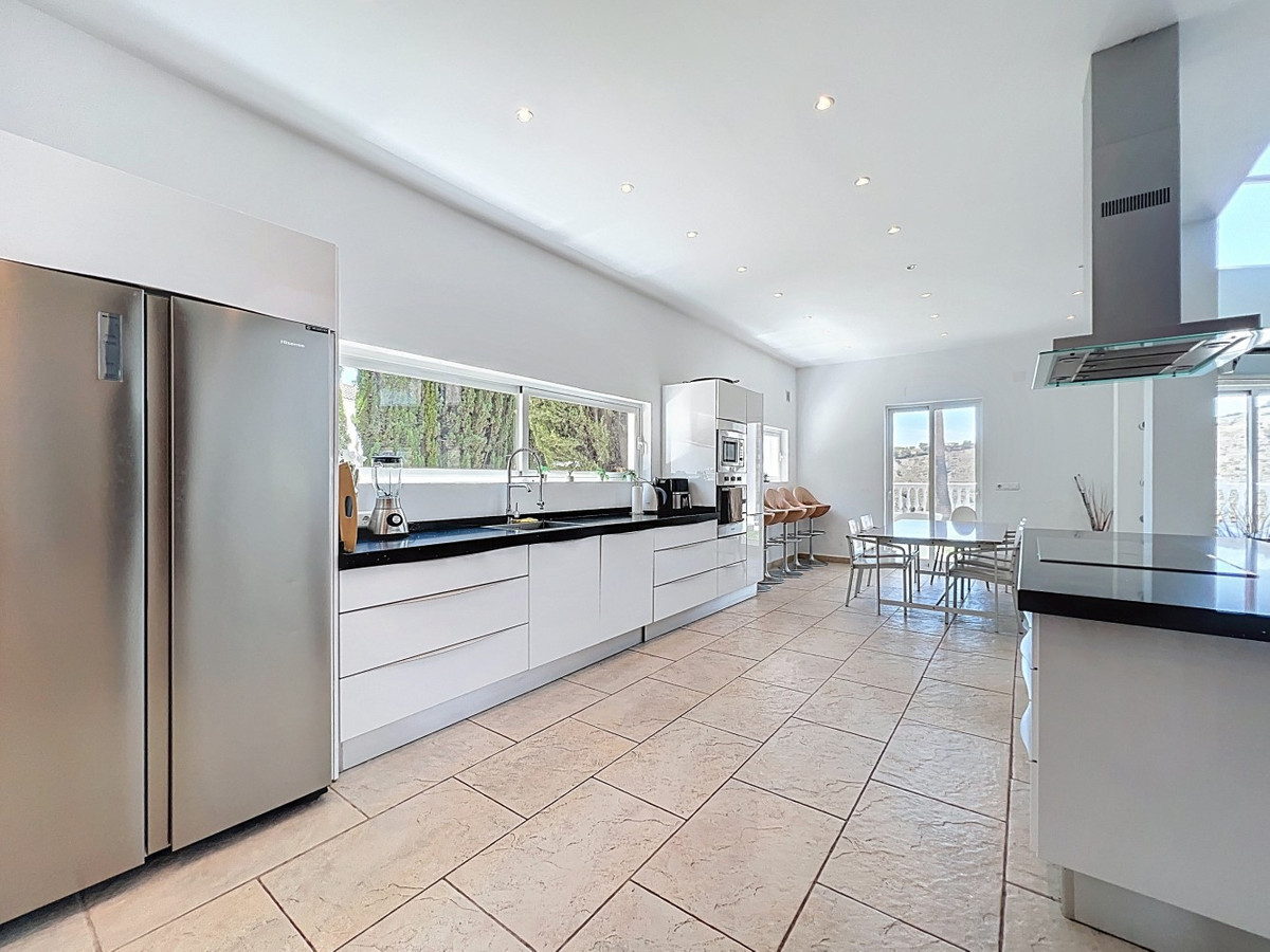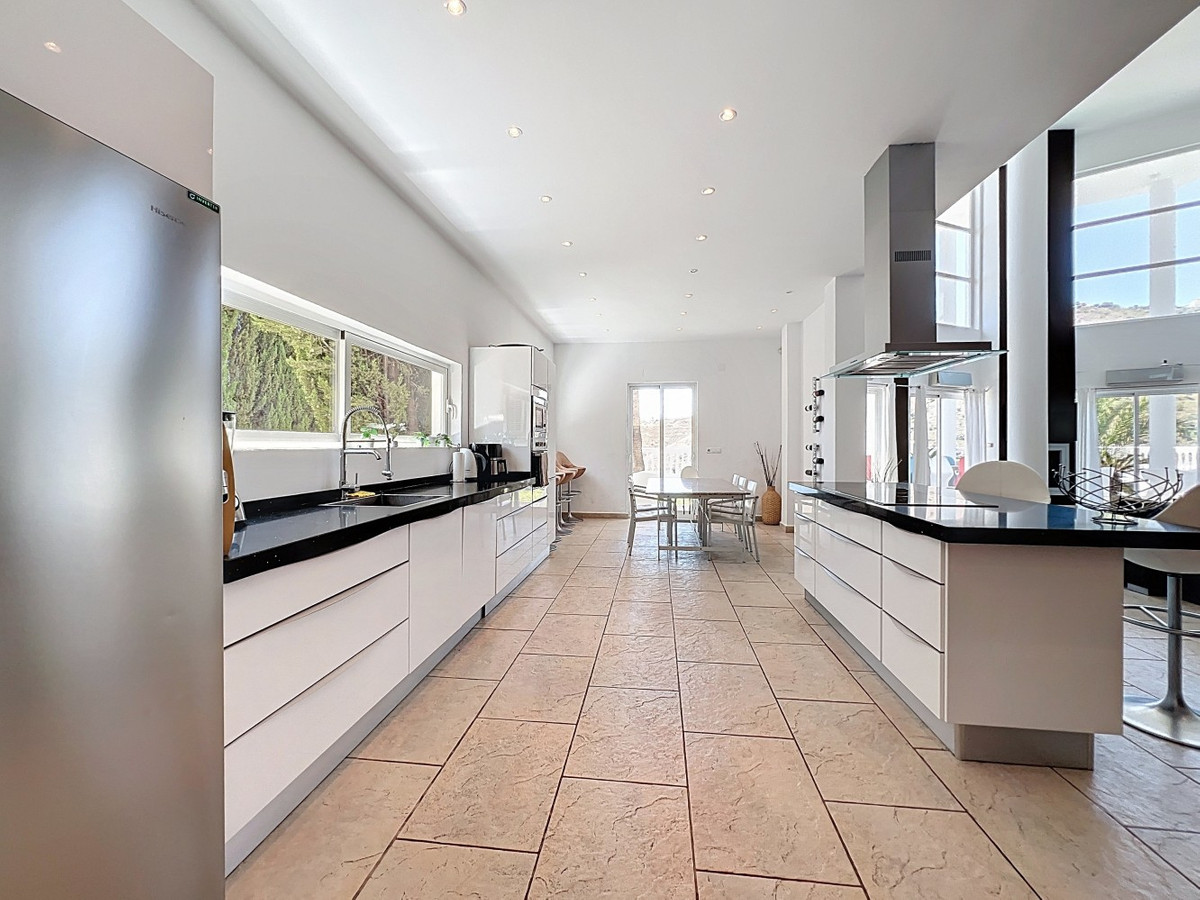 Cette impressionnante villa à Malaga, en Espagne, offre un mélange harmonieux d'espace, de luxe et de design moderne. S'étendant sur 395,8 m² répartis sur deux niveaux, la propriété comprend 7 chambres et 5 salles de bains, ce qui la rend idéale pour les familles nombreuses ou pour ceux qui aiment recevoir. Le rez-de-chaussée, d'une superficie de 212,7 m², abrite un magnifique espace de vie ouvert avec une impressionnante hauteur sous plafond. De grandes baies vitrées et des portes coulissantes en verre inondent l'espace de lumière naturelle et créent une transition fluide entre l'intérieur et l'extérieur. Le salon est dominé par une élégante cheminée et agrémenté d'un mobilier contemporain et confortable. La cuisine ultramoderne est un véritable rêve pour les gourmets, avec ses meubles blancs laqués, ses appareils haut de gamme et son îlot central spacieux avec coin repas. De larges fenêtres offrent une vue imprenable sur le paysage environnant pendant la préparation des repas. Un jardin zen intérieur, agrémenté de sable et de plantes décoratives, apporte une touche de sérénité au rez-de-chaussée. Les couloirs sont larges et lumineux, et leurs murs sont ornés d'œuvres d'art soigneusement sélectionnées. En accédant au deuxième étage par un escalier moderne aux balustrades en verre, vous découvrirez 183 m² d'espace de vie supplémentaire. La chambre principale, spacieuse (26,9 m²), offre une vue imprenable et une salle de bains privative. Les salles de bains de la propriété, élégantes et modernes, sont dotées de carrelage grand format, de douches à l'italienne et d'équipements contemporains. Certaines présentent des éléments de design originaux, comme des rideaux de douche imprimés de journaux, qui apportent une touche ludique à l'esthétique minimaliste. À l'extérieur, la propriété bénéficie d'une position dominante offrant une vue panoramique sur les montagnes et la campagne environnantes, ainsi que sur la Méditerranée scintillante. L'espace extérieur comprend une grande piscine, idéale pour se détendre ou recevoir tout en profitant du paysage à couper le souffle. La propriété est facilement accessible, assurant une liaison aisée avec les commodités et les attractions touristiques à proximité. De vastes terrasses offrent un espace généreux pour la détente et les loisirs en plein air, faisant de cette villa le lieu idéal pour profiter du climat espagnol avec style. Dans toute la villa, la palette de couleurs est principalement blanche, créant une atmosphère lumineuse et aérée parfaitement adaptée au climat espagnol. Des touches de couleur dans le mobilier et les œuvres d'art ajoutent un intérêt visuel sans perturber l'ambiance sereine. Cette villa représente le summum de l'art de vivre espagnol moderne, alliant intérieurs spacieux, finitions haut de gamme et vues à couper le souffle dans un ensemble impressionnant : une véritable maison de rêve. Nous sommes ravis de pouvoir vous présenter prochainement cette propriété d'exception, en personne ou par visite virtuelle. Car ce monde est unique, à l'image de notre Axarquía. En Andalousie. Sur la Costa del Sol. Ici, sous le soleil…