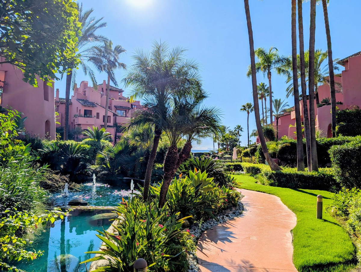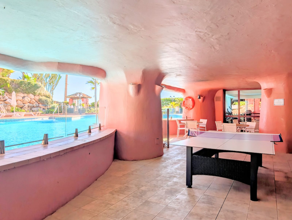 Ce complexe balnéaire, Menara, est entouré d'autres résidences de standing qui bénéficient toutes d'un parc public aménagé avec une ancienne tour de guet. Plusieurs commodités sont accessibles à pied, comme le restaurant réputé Tikitano, ainsi que des boutiques et un bar dans un complexe voisin. D'autres services sont disponibles à quelques minutes en voiture. La ville d'Estepona est à 6 minutes en voiture de Menara et l'aéroport de Malaga est facilement accessible par l'autoroute à péage AP-7.