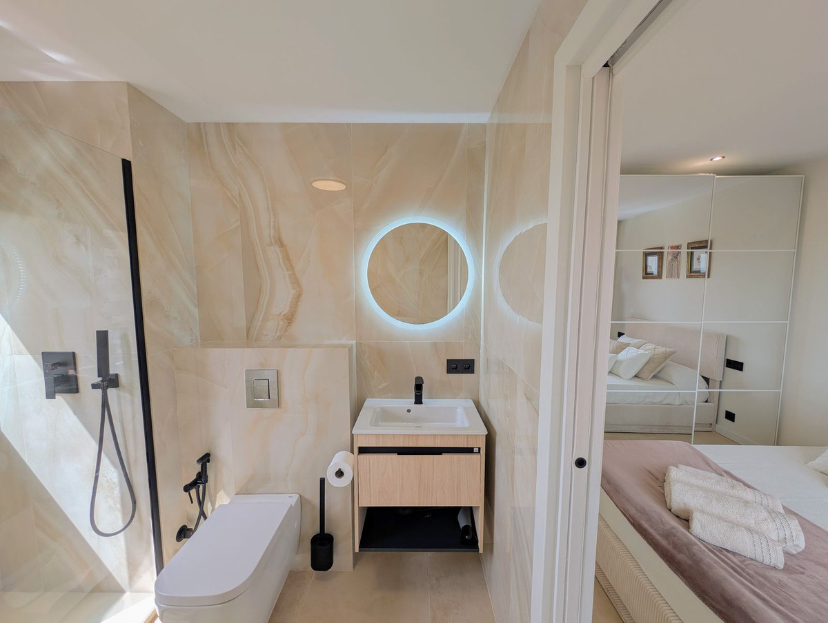 This fully renovated PENTHOUSE 1-bedroom, 1-bathroom apartment offers the perfect blend of modern living and comfort, nestled in the heart of Nueva Andalucía, Aloha. Boasting ,spectacular sea views of both La Concha mountain and Gibraltar, it provides a peaceful yet connected retreat close to all amenities.