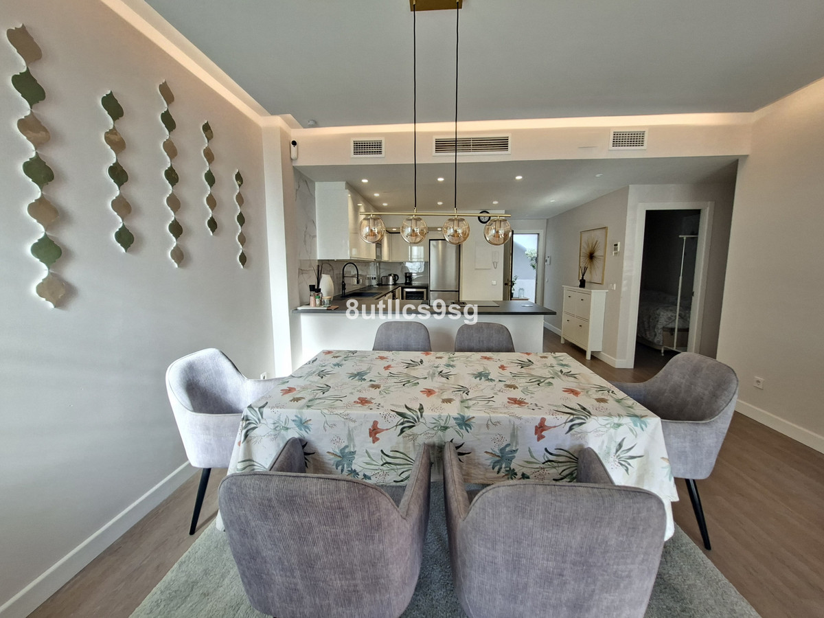 Nice & Modern corner ground floor apartment in the heart of Nueva Andalucia, Marbella, in the area of Aloha - Las Brisas, in the well-known Super manzana H. This property has been reformed recently this year 2025, and it’s located in a gated community and has 3 bedrooms and 2 bathrooms, one of them en suite, a large living room with fireplace, good size fully equipped kitchen and terrace overlooking the common gardens. The apartment has central air conditioning in all rooms and one numbered uncovered parking space inside the complex.