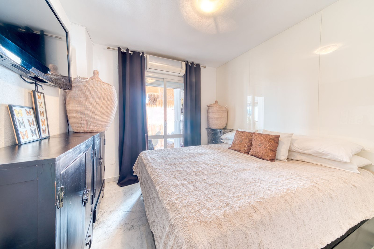 Les deux chambres doubles offrent un havre de paix et de confort. La chambre principale dispose de sa propre salle de bains privative, tandis que la seconde chambre offre une grande flexibilité pour accueillir des invités, la famille ou pour le télétravail. Chaque salle de bains est équipée d'installations modernes et d'un carrelage raffiné, alliant fonctionnalité et élégance discrète. Le cadre exceptionnel contribue à un cadre de vie privilégié. Pueblo del Sol est réputé pour ses façades blanchies à la chaux, ses toits de tuiles, ses bougainvillées en fleurs et ses ruelles piétonnes tranquilles qui créent une authentique ambiance andalouse. Au cœur de la résidence se trouve une magnifique piscine entourée de verdure, un lieu serein idéal pour se détendre durant les longs étés de la Costa del Sol.