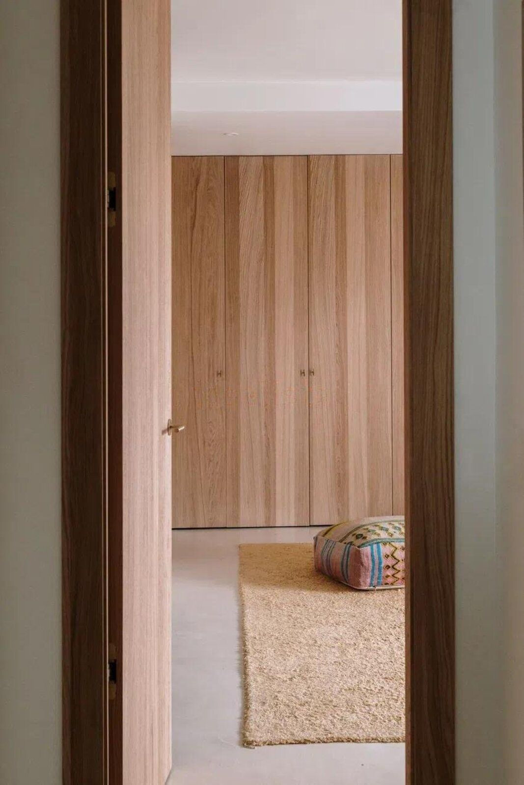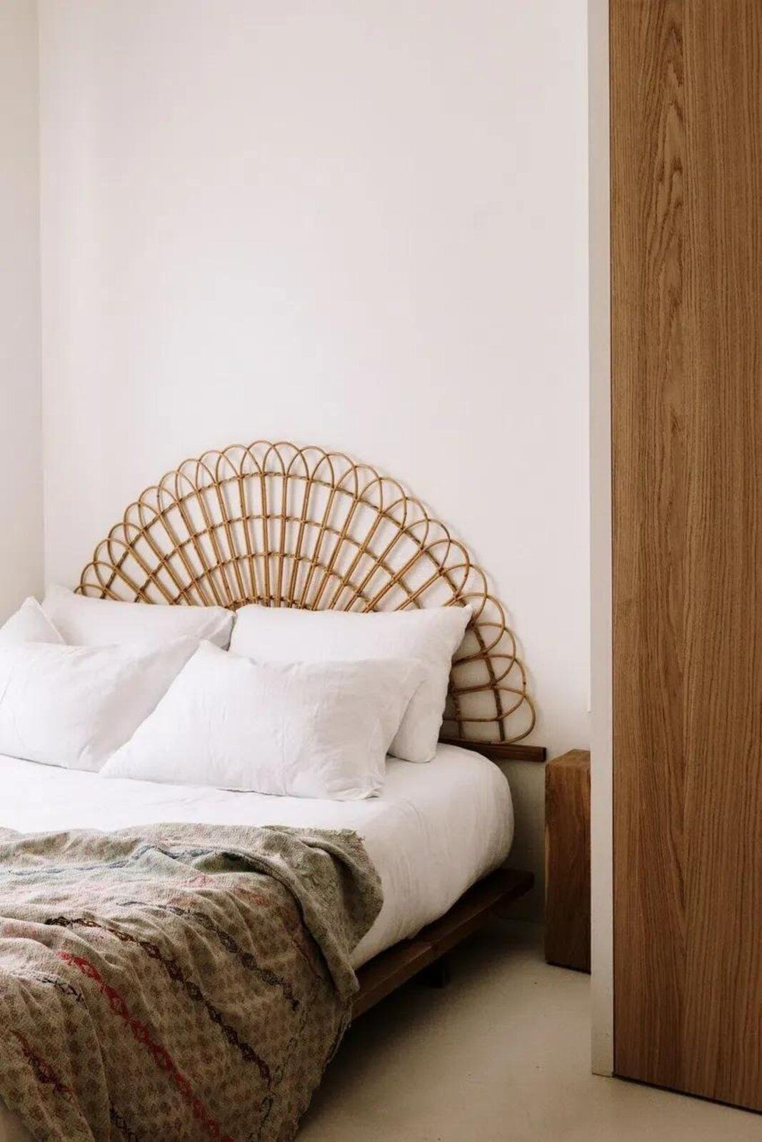 Chambre parentale avec vue dégagée sur La Concha. Sommier en microciment et lit double 200x200 cm avec prises électriques intégrées. Stores électriques et fenêtres à double vitrage. Placards intégrés en chêne.