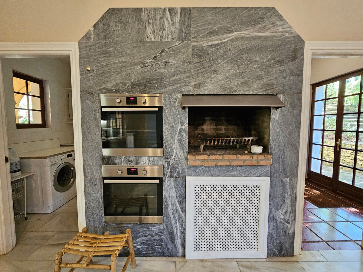 The large open terrace at the back of the house leads down to the swimming pool and secluded outdoor areas with ponds and water features as well as an outdoor dining area with barbeque. Under the terrace is an unfinished basement which could house an indoor pool and a gym.