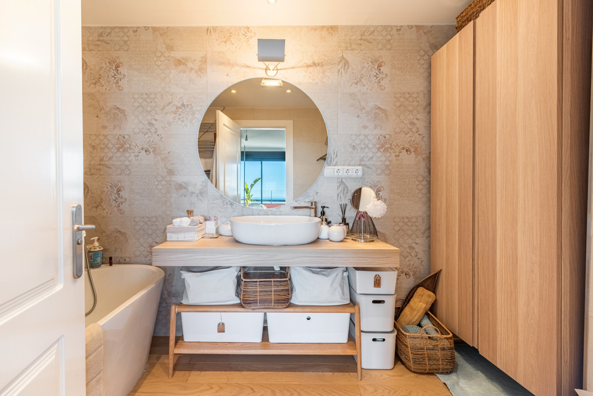 L'autre espace nuit est idéal pour les invités, les enfants plus âgés ou les adolescents. Deux chambres avec une salle de bain à partager. Ces chambres offrent également une vue sur la mer.