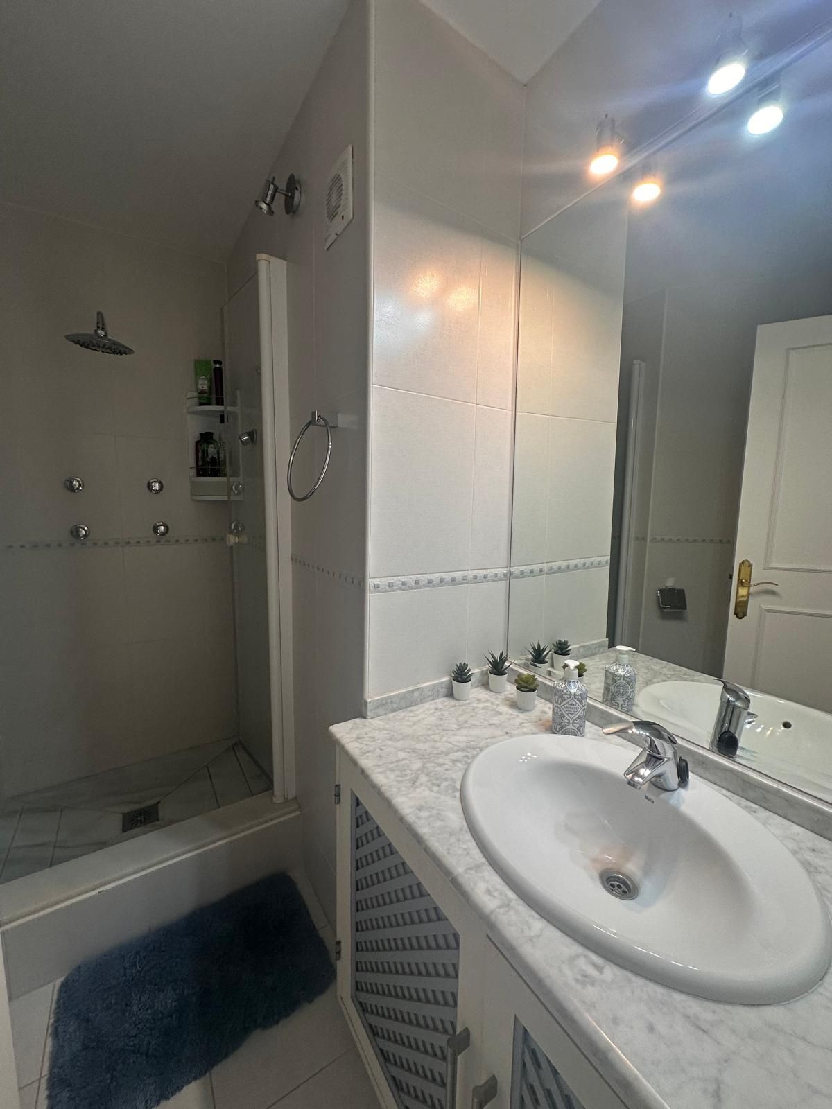 Situé au deuxième étage d'un immeuble de style andalou, ce bien comprend deux chambres avec placards intégrés et deux salles de bains, idéal pour les familles ou les couples en quête d'espace et de confort.