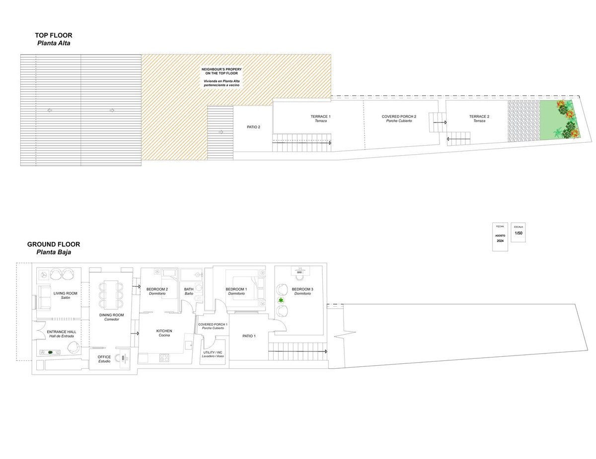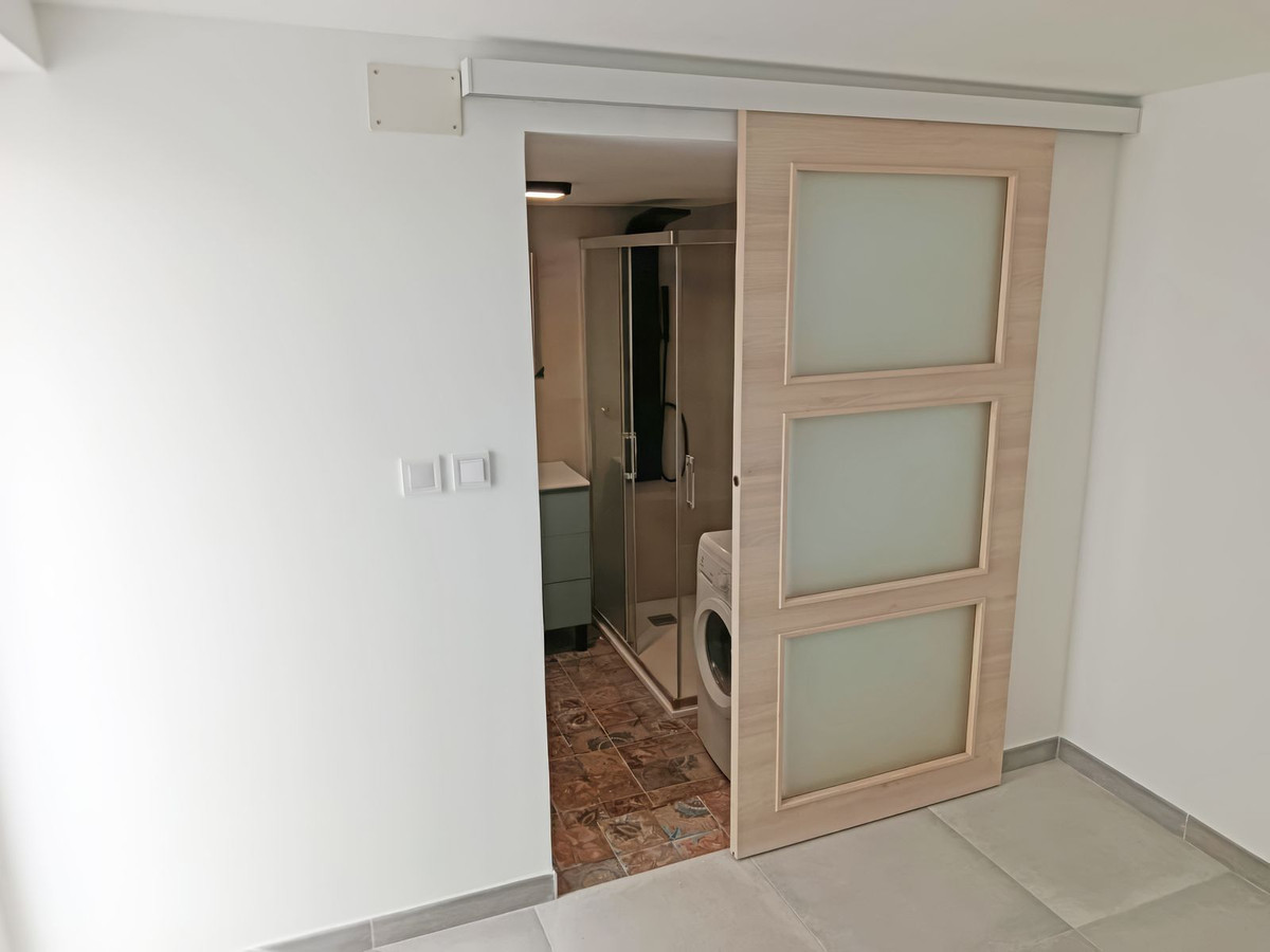 On y trouve également un cellier pratique et une grande salle de bains moderne. La cuisine donne directement accès à l'extérieur, où plusieurs espaces de détente vous attendent : terrasses, coins lounge confortables, jardin et toilettes extérieures – un atout indéniable pour profiter pleinement du climat andalou.