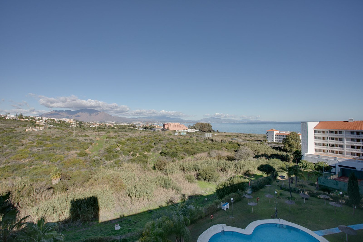 Cet appartement de 128 m² habitables comprend une terrasse couverte de 11 m² et un solarium de 21 m² offrant une vue imprenable sur la mer Méditerranée et le rocher de Gibraltar. Au rez-de-chaussée se trouvent deux chambres avec placards intégrés, une salle de bains rénovée, des toilettes invités et une cuisine neuve entièrement équipée ouverte sur un séjour lumineux avec accès direct à la terrasse. À l'étage, la troisième chambre dispose d'une salle de bains privative et d'un accès direct au solarium.