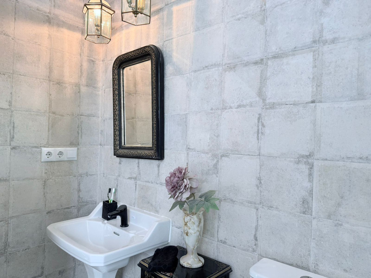 Répartie sur trois étages baignés de lumière, la maison offre un vaste espace de vie ouvert comprenant un salon et une salle à manger, qui se prolonge harmonieusement vers une superbe cuisine américaine entièrement équipée, avec un four de style piano et un îlot central. Un luminaire sur mesure spectaculaire traverse le centre de la maison, inondant les espaces de lumière naturelle et renforçant l'atmosphère aérée, élégante et digne d'un riad. Au-delà de la cuisine se trouve un second salon, idéal pour recevoir ou se détendre en toute tranquillité. Deux escaliers distincts ajoutent du cachet et de la flexibilité à l'agencement.
