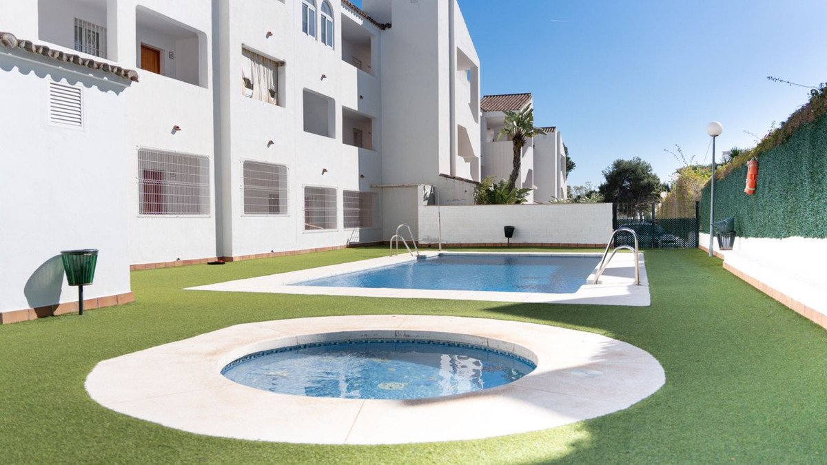 L'appartement est en bon état et présente des atouts qui valorisent le bien sur le long terme, tels qu'un sol en marbre, des placards intégrés, une bonne orientation et une excellente luminosité naturelle. La terrasse offre un espace extérieur confortable avec suffisamment de place pour une table et des chaises, idéal pour en profiter toute l'année. La résidence propose également une piscine commune et des jardins paysagers, créant ainsi un cadre de vie agréable et soigné.