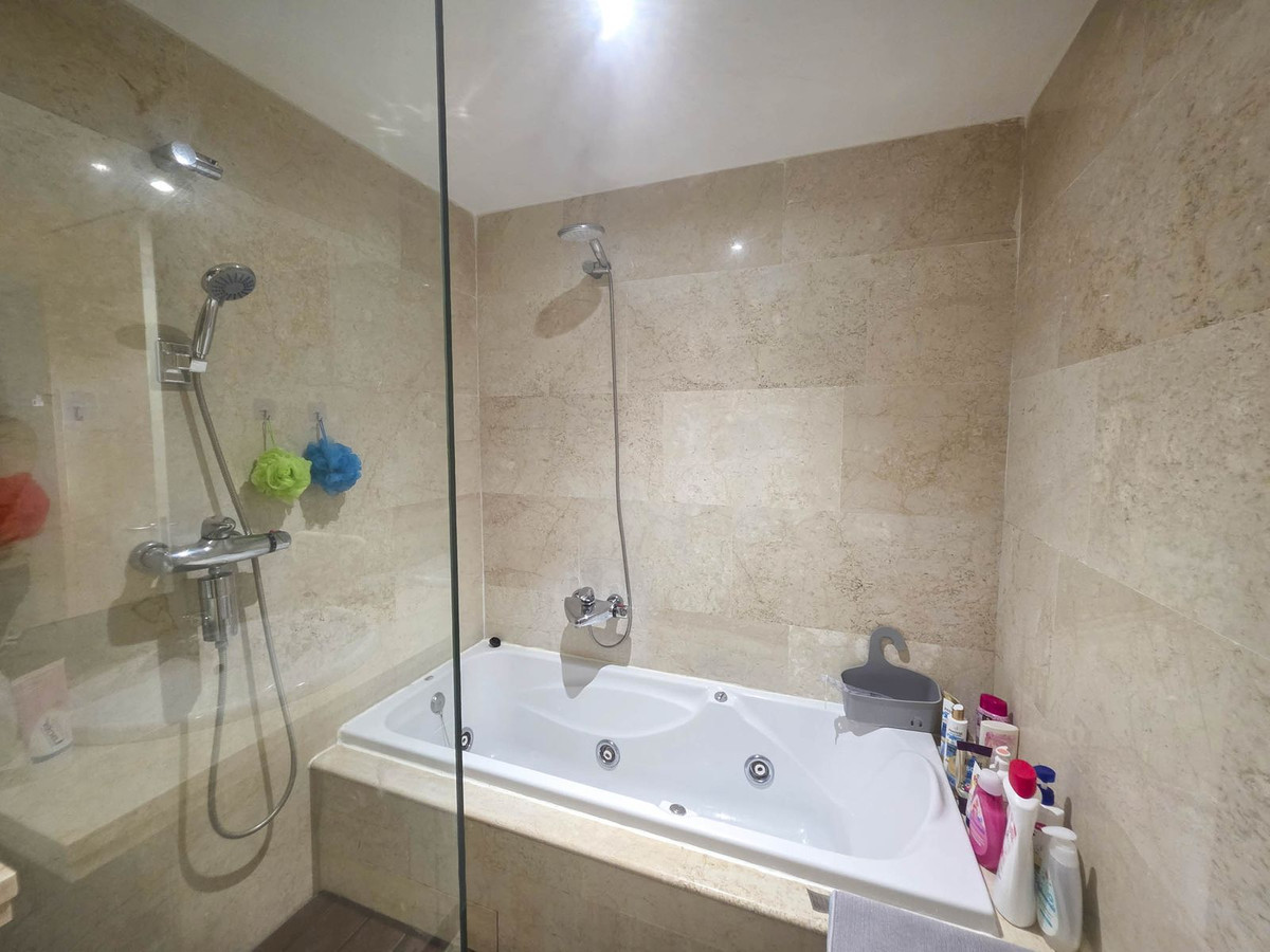 Parmi ses atouts, on note la climatisation, le chauffage au sol, les sols en marbre et la possibilité d'acquérir le bien meublé. Il comprend également une place de parking privée et un cellier, pour plus de confort et d'espace de rangement. La résidence sécurisée est bien entretenue et dispose de piscines communes intérieure et extérieure, d'espaces verts communs et d'un ascenseur, offrant un cadre de vie paisible et sûr.