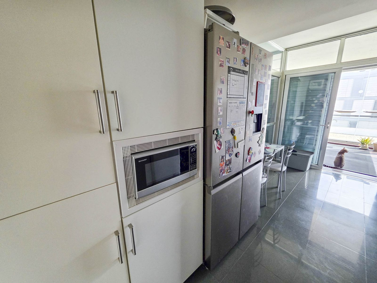 Cette propriété offre trois chambres et deux salles de bains, avec une configuration fonctionnelle idéale comme résidence principale ou secondaire. Le séjour-salle à manger spacieux et lumineux donne directement sur la terrasse, partiellement fermée par un système Lumon, permettant ainsi son utilisation toute l'année. Une partie de cet espace a été aménagée en dressing, ce qui représente un atout supplémentaire. La cuisine, indépendante et fonctionnelle, est parfaitement agencée pour un usage quotidien.