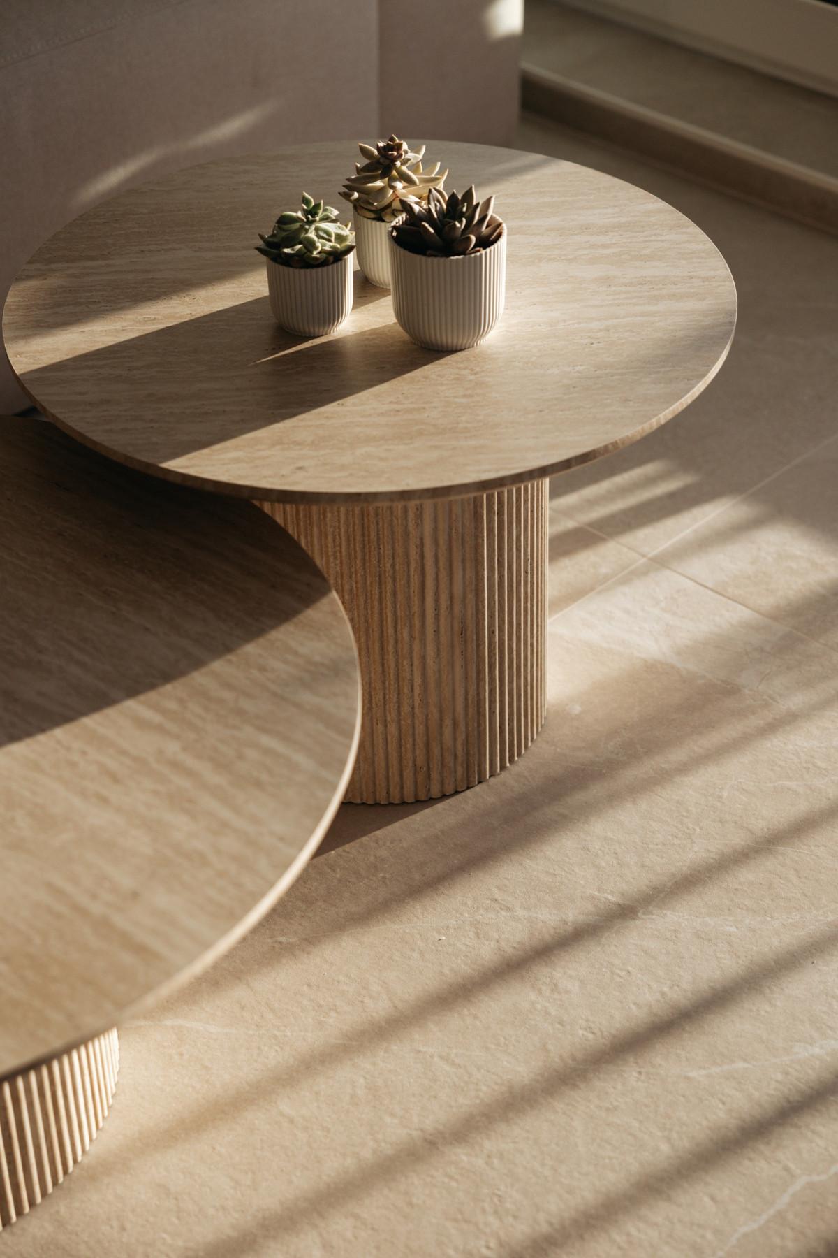 Juste devant la fenêtre de la cuisine, un charmant citronnier apporte une authentique touche méditerranéenne, s'harmonisant parfaitement avec le design nordique épuré de la maison. De ce niveau, vous accédez directement à une terrasse privée, idéale pour les repas en plein air, la détente et pour admirer les couchers de soleil spectaculaires sur la vallée du golf.