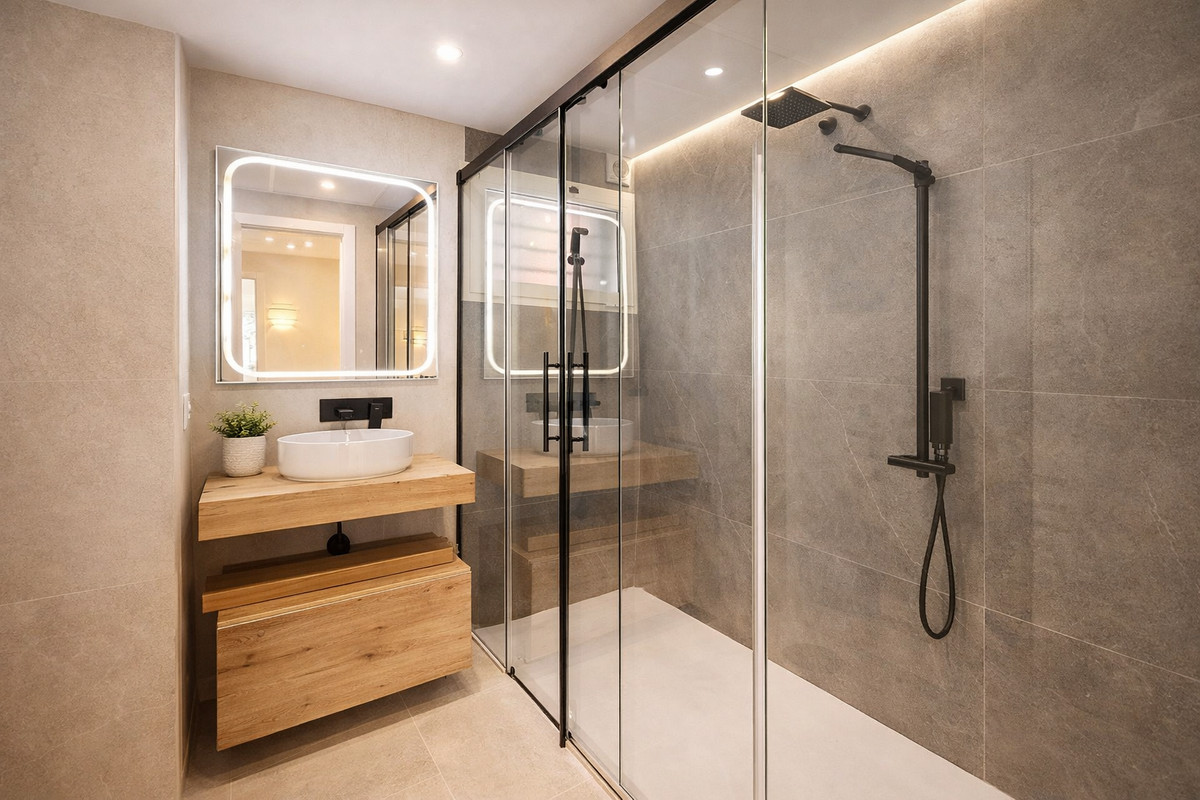 Spectaculaire appartement de 120 m², récemment rénové avec des matériaux et des finitions haut de gamme. Livré entièrement meublé et prêt à emménager, il est décoré avec un mobilier exclusif et équipé d'électroménagers haut de gamme. Il offre un style moderne, fonctionnel et confortable dans l'un des quartiers les plus prisés d'Estepona.