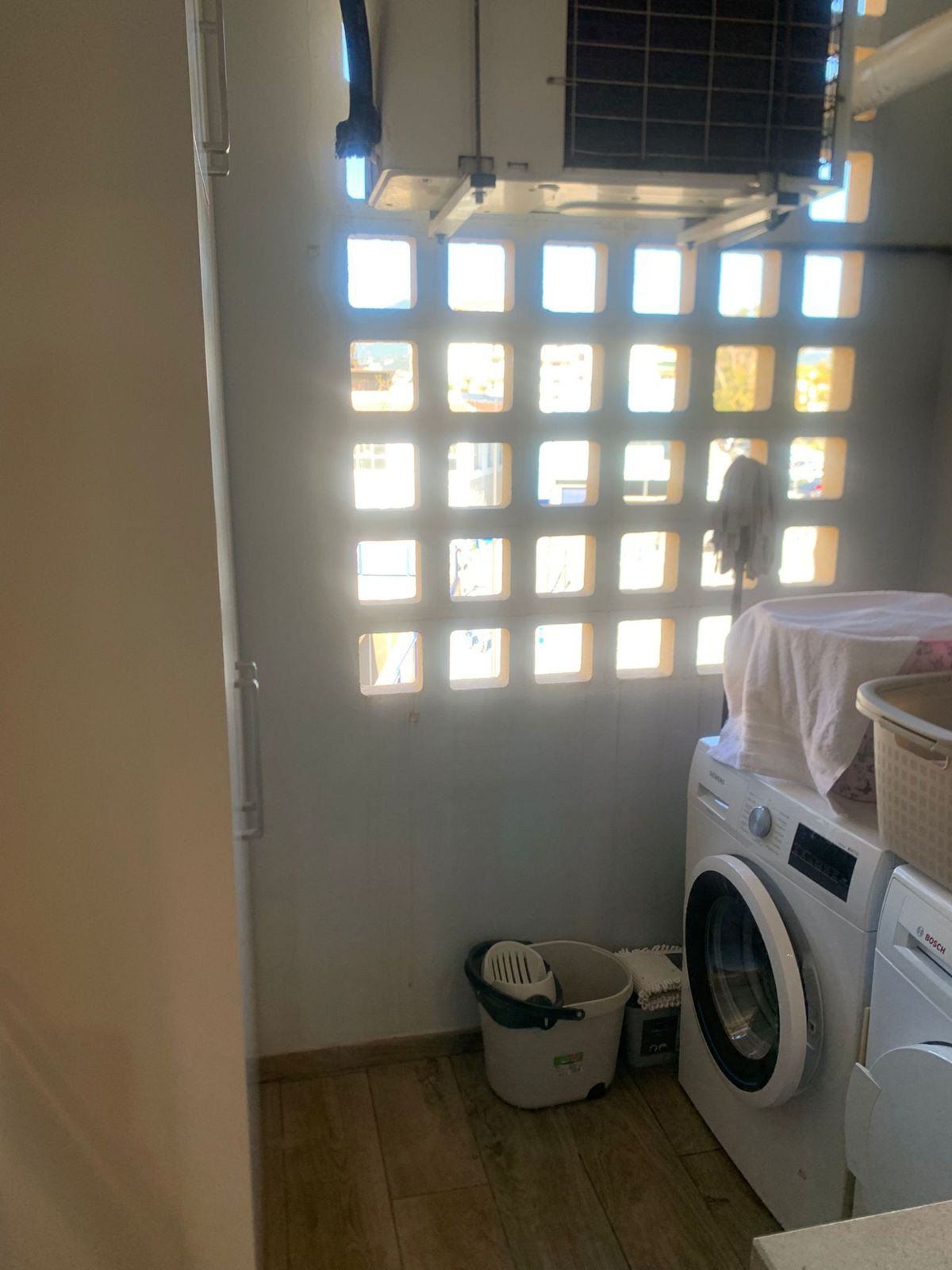 Un ascenseur vous conduit au 3e étage et, en entrant dans le hall, vous trouverez un grand placard de rangement intégré. Des portes doubles mènent au salon et à une buanderie séparée. Le salon, spacieux et lumineux grâce à son orientation sud, s'ouvre sur une magnifique terrasse spacieuse, idéale pour dîner en plein air, se détendre et bronzer, avec une vue imprenable sur la mer.