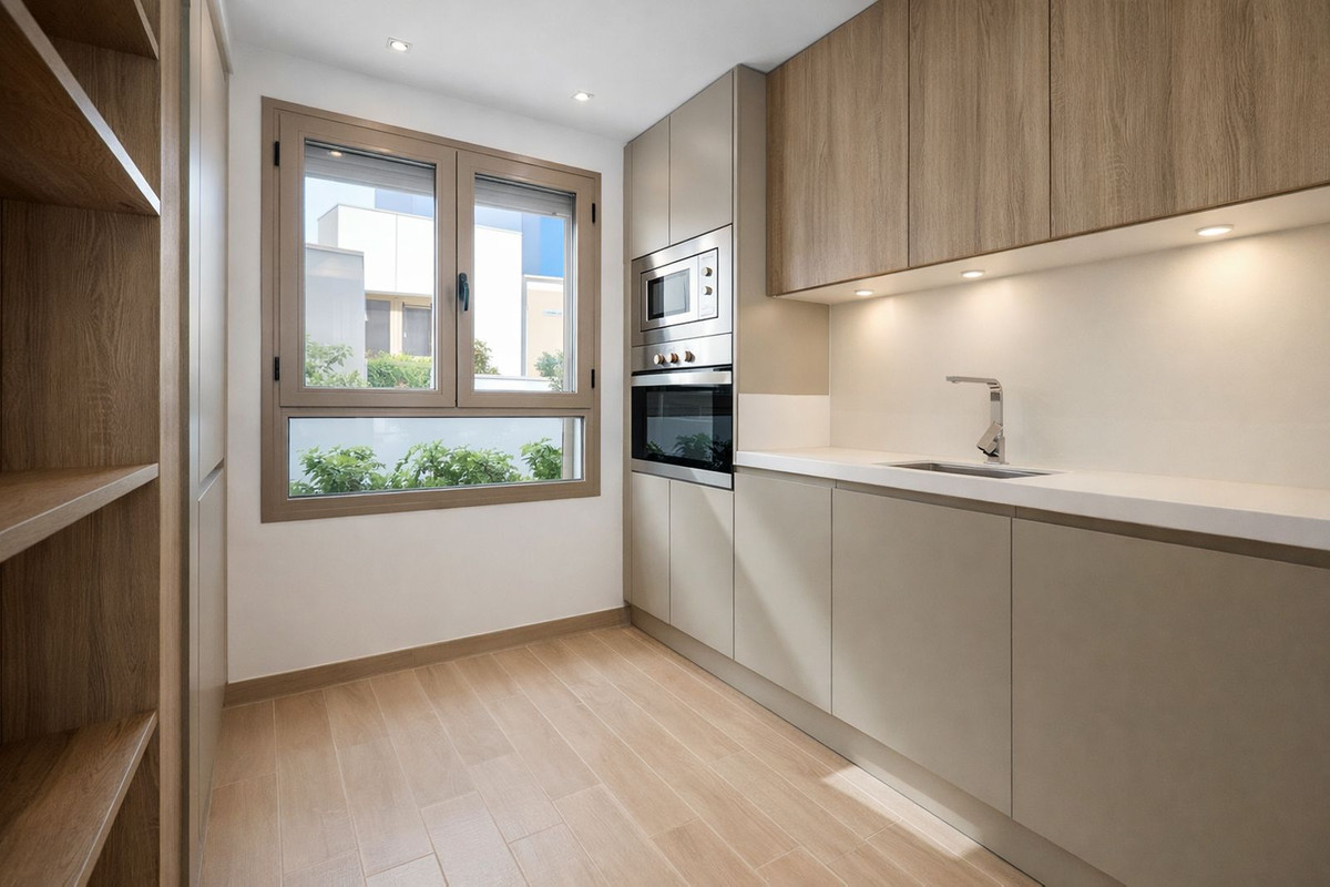 La pièce de vie principale se compose d'un salon et d'une salle à manger décloisonnés et lumineux, dotés de baies vitrées coulissantes s'ouvrant directement sur une terrasse privative. Idéale pour se détendre, recevoir ou profiter du climat méditerranéen tout au long de l'année, elle offre une vue imprenable sur le golf et les montagnes environnantes. Une cuisine moderne et entièrement équipée complète cet espace de vie, alliant fonctionnalité et confort contemporain.