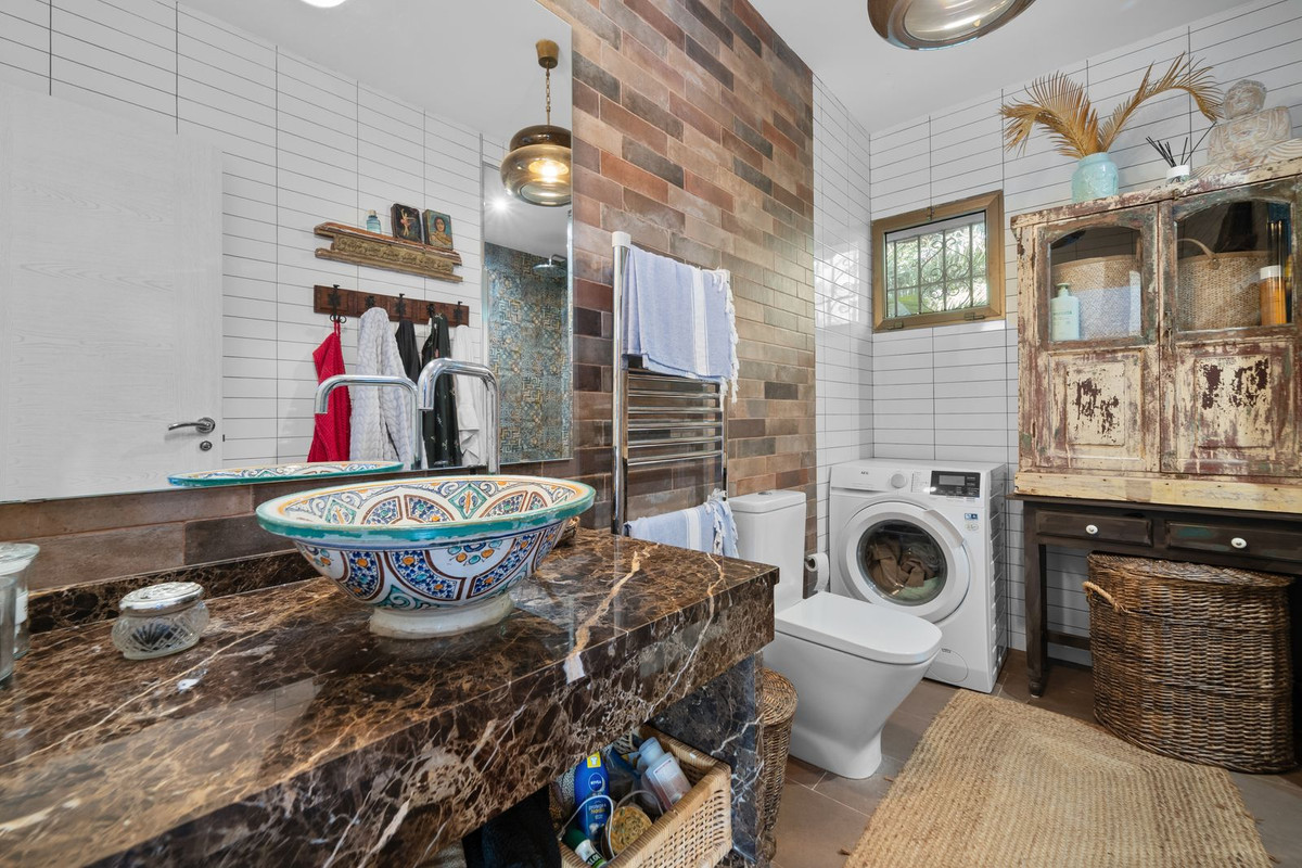Les trois chambres sont spacieuses et la villa comprend deux salles de bains récemment rénovées avec douches à l'italienne. Au rez-de-chaussée, l'ancien garage a été transformé en un espace de vie chaleureux et élégant, idéal pour les réunions de famille ou comme chambre supplémentaire.