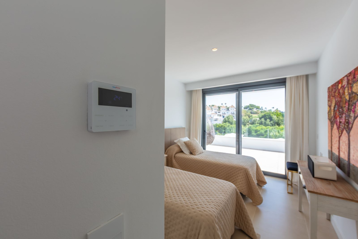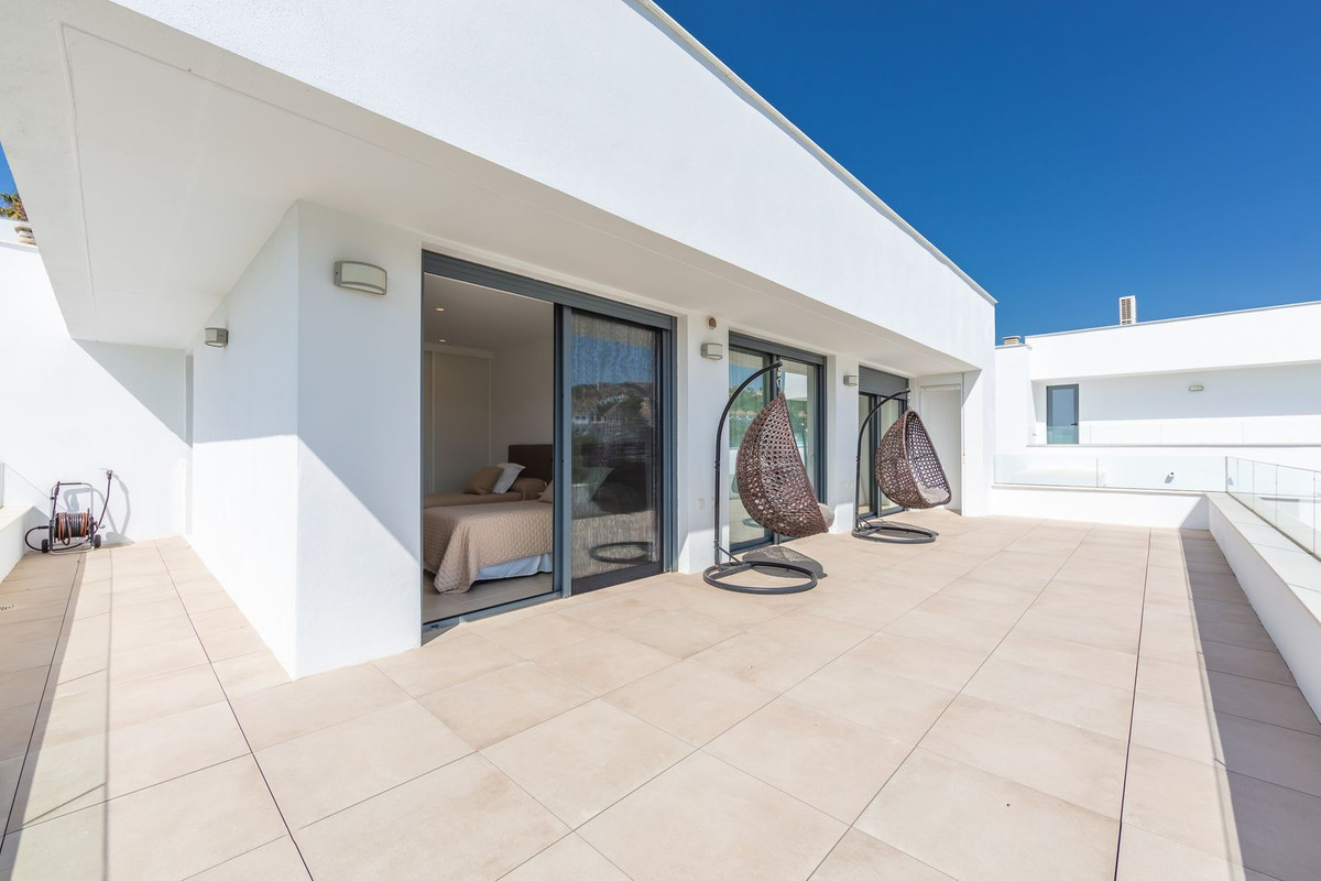 Magnifique villa contemporaine, de construction récente avec des matériaux haut de gamme, offrant une vue imprenable sur la mer et la verdure environnante. Présentée en parfait état et idéalement située dans un quartier résidentiel calme, elle se trouve à seulement 200 mètres des supermarchés, restaurants, salle de sport, coiffeur et autres commodités, à 800 mètres du charmant Puerto de la Duquesa et à 500 mètres des superbes plages de Manilva. La ville animée de Sabinillas, avec ses commerces et services de toutes sortes, est à seulement 1,5 km. Grâce à son orientation sud-est, la propriété bénéficie d'un ensoleillement optimal tout au long de la journée et d'une vue imprenable sur le lever du soleil chaque matin. La villa est répartie sur deux niveaux et comprend un garage spacieux de 46 m² pour deux véhicules, situé à l'entrée, ainsi qu'un grand débarras de 15 m². Elle dispose d'un vaste séjour-salle à manger donnant sur une grande véranda, facilement fermable par des rideaux de verre. Toutes les chambres sont spacieuses et baignées de lumière naturelle, tout en préservant l'intimité de leurs occupants. Cette villa offre des prestations exceptionnelles, notamment un chauffage au sol dans toute la propriété, un système de filtration d'eau performant avec surpresseur, des volets et stores électriques, des moustiquaires à toutes les fenêtres et un système domotique. Le jardin, très privé et facile d'entretien grâce à son gazon synthétique haut de gamme, comprend une piscine, un éclairage extérieur et un agréable espace détente, idéal pour se relaxer et profiter du plein air. Cette villa représente une opportunité exceptionnelle, difficile à égaler, et mérite amplement une visite.