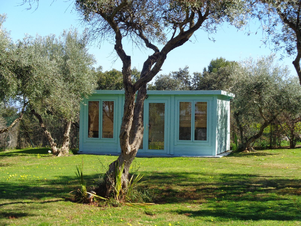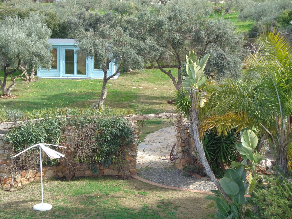 Passez le porche et vous accéderez à la vaste oliveraie gazonnée. Un atelier en bois, équipé d'électricité, de climatisation et d'éclairage, se trouve également à proximité. Il est idéal comme maison d'été, pour les loisirs créatifs ou comme refuge confortable.