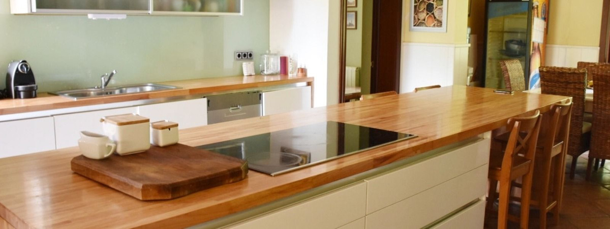 La cuisine entièrement équipée comprend des appareils électroménagers modernes, dont un réfrigérateur, un micro-ondes et un lave-vaisselle. Son long plan de travail en bois fait également office de table pour le petit-déjeuner. Attenant à la cuisine se trouve un second salon ou salle de télévision, offrant un espace de détente supplémentaire. Ce niveau comprend également la suite parentale, dotée d'un très grand dressing et d'une superbe salle de bains de style spa avec baignoire ronde, ainsi qu'une autre chambre avec salle de bains privative et une buanderie pratique.