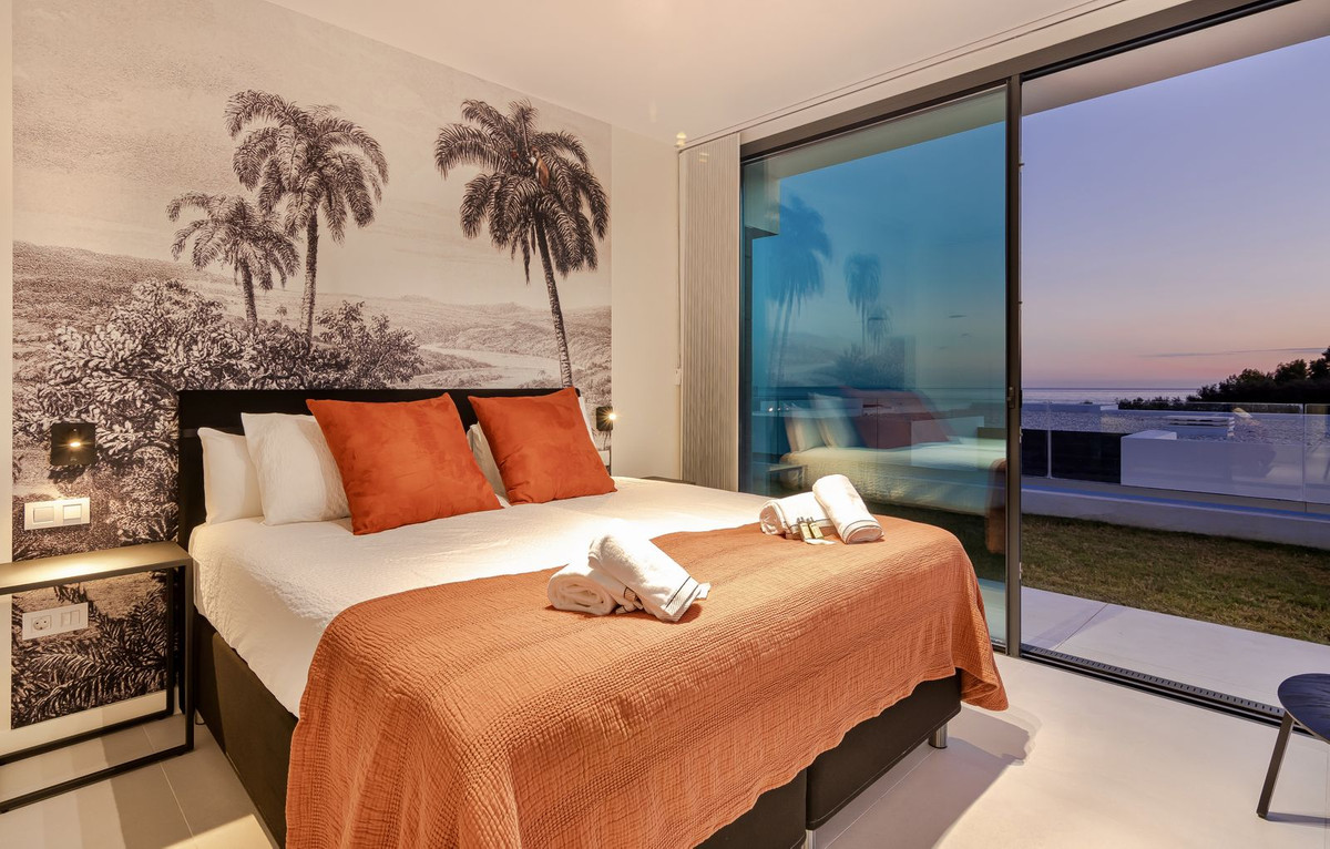 Villa individuelle contemporaine de 4 chambres située dans le prestigieux domaine privé de Cabo Royale, à Calahonda (Mijas Costa), à l'est de Marbella. Construite en 2021, la propriété bénéficie d'une orientation plein sud, offrant une luminosité exceptionnelle, une vue imprenable sur la mer et une grande intimité. La villa se trouve à quelques pas du port de plaisance de Cabopino et à environ 700 mètres de la plage. Des terrains de golf et des commerces de proximité sont également accessibles à pied.