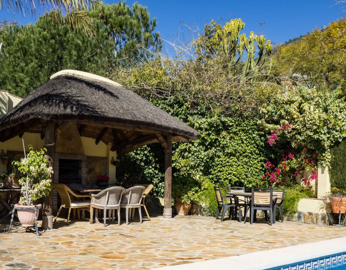 Magnifique espace piscine avec pergola de style balinais et coin barbecue, idéal pour les repas en plein air. Propriété fantastique pour recevoir ! Sans vis-à-vis – un véritable havre de paix et d’intimité.