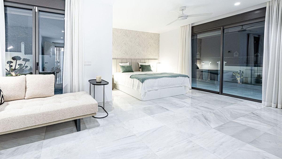 Caractéristiques : Terrasse couverte, placards intégrés, proximité des transports, terrasse privée, solarium, Wi-Fi, débarras, buanderie, salle de bains attenante, sol en marbre, double vitrage, domotique, logement pour le personnel
