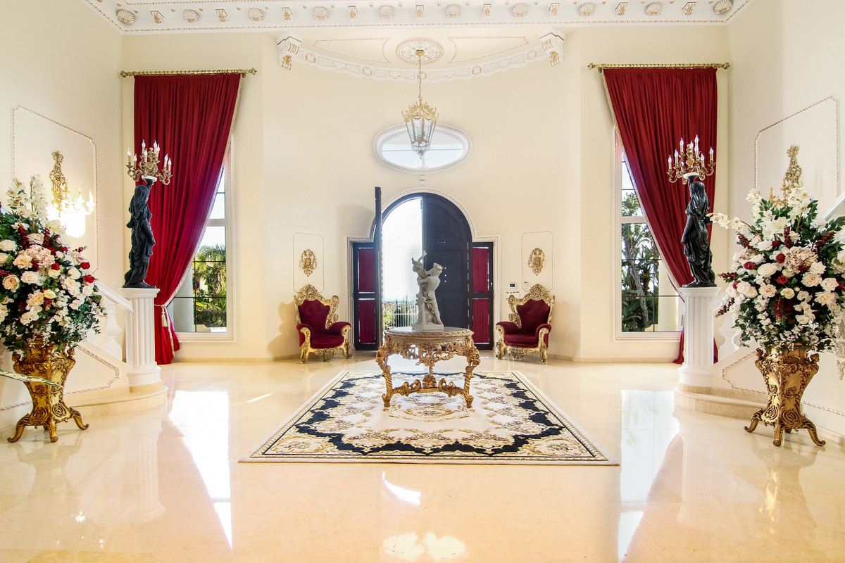 Villa unique à Sotogrande Alto, offrant une vue panoramique sur la mer, Gibraltar, l'Afrique et les montagnes. Située à quelques minutes en voiture du port de Sotogrande, du prestigieux golf de Valderrama et d'autres commodités. Ses atouts principaux comprennent un magnifique jardin privé avec piscine, la climatisation réversible, des sols en marbre, une cuisine entièrement équipée, une salle de jeux, une salle de cinéma, une salle d'opéra (sur le thème du « Fantôme de l'Opéra »), un garage pour 20 voitures, et bien plus encore !