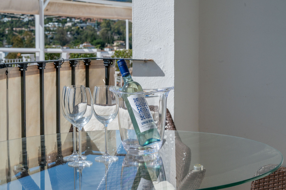 À l'étage, la suite parentale dispose d'une spacieuse salle de bains privative et s'ouvre sur une terrasse découverte entièrement privée. Sa position surélevée amplifie considérablement la vue panoramique déjà magnifique. De là, un escalier mène au joyau de la maison : un solarium de 30 m² sur le toit, offrant une vue imprenable sur la vallée du golf de Nueva Andalucía et les montagnes environnantes, un espace idéal pour admirer le coucher du soleil et profiter des longues soirées méditerranéennes.