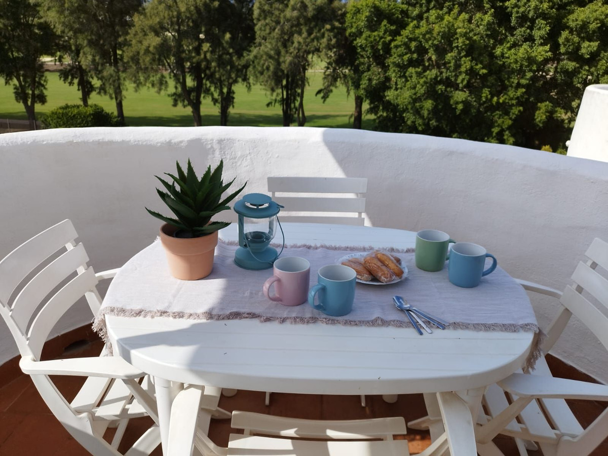 Ce superbe et spacieux penthouse offre un cadre de vie confortable et paisible, dans un environnement pittoresque. Profitez d'une vue imprenable sur les greens, juste en face du golf. Situé au deuxième étage d'un immeuble de style andalou, cet appartement comprend deux chambres avec placards intégrés et deux salles de bains (dont une attenante) – idéal pour les familles ou les couples en quête d'espace et de confort.
