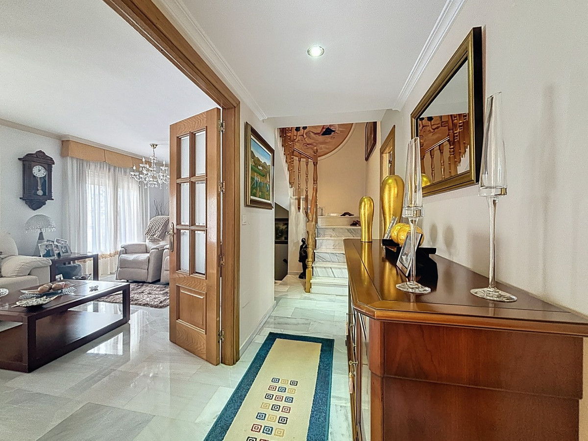Cette magnifique villa de trois étages à Torre del Mar est idéale pour les familles en quête d'espace, de confort et d'un emplacement exceptionnel. Au premier étage, vous trouverez un salon lumineux et chaleureux, des toilettes et une cuisine-salle à manger séparée, parfaite pour partager des moments de convivialité en famille. Le deuxième étage comprend trois chambres, dont deux avec accès à une terrasse, l'une d'elles disposant d'une salle de bains privative, ainsi qu'une autre salle de bains, offrant confort et intimité à tous les membres de la famille. Au sous-sol, une spacieuse chambre avec dressing, une salle de bains complète et une cave à vin offrent un espace modulable : il peut être aménagé en garage pour deux voitures ou en logement indépendant, selon vos besoins. À l'extérieur, la maison bénéficie d'une terrasse vitrée, d'une piscine privée et d'une cuisine d'été avec barbecue, idéale pour profiter du beau temps et des loisirs en plein air. La maison dispose également d'un cellier, d'une buanderie, de placards intégrés, de la climatisation et d'une cheminée, pour un confort optimal. Une opportunité unique dans un emplacement privilégié à Torre del Mar, prête à vous accueillir et à vous faire profiter de la Méditerranée. Nous sommes ravis de pouvoir vous présenter prochainement cette propriété, en personne ou par visite virtuelle. Car ce monde est unique, à l'image de notre Axarquía. En Andalousie. Sur la Costa del Sol. Ici, sous le soleil…