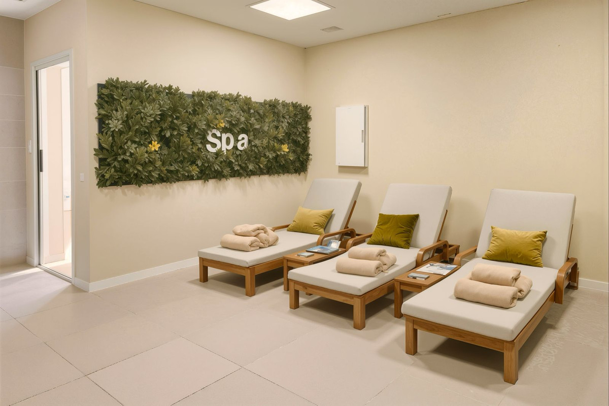 En plus de vos espaces extérieurs privés, vous bénéficierez de l'accès aux installations communes de Cala Serena Village : une grande piscine entourée d'une végétation luxuriante, une salle de sport entièrement équipée, un spa avec deux types de saunas et un jacuzzi.