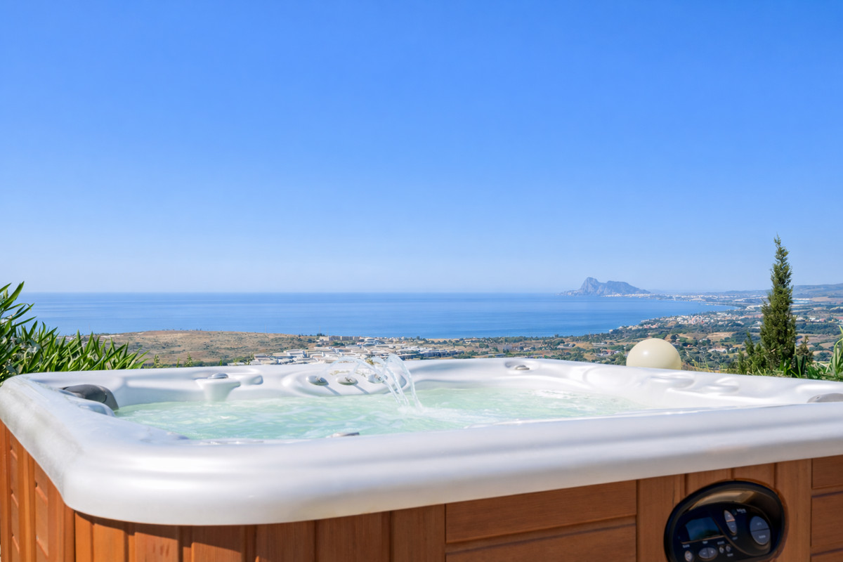 La vie en plein air est un atout majeur, avec une piscine chauffée, de vastes terrasses, un jardin arboré et de multiples espaces de détente conçus pour en profiter toute l'année. Le grand terrain comprend une cinquantaine d'orangers, un éclairage extérieur, un puits privé alimenté en eau douce par la Sierra Bermeja et une citerne de 50 000 litres, offrant ainsi charme et autonomie.