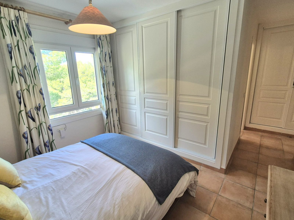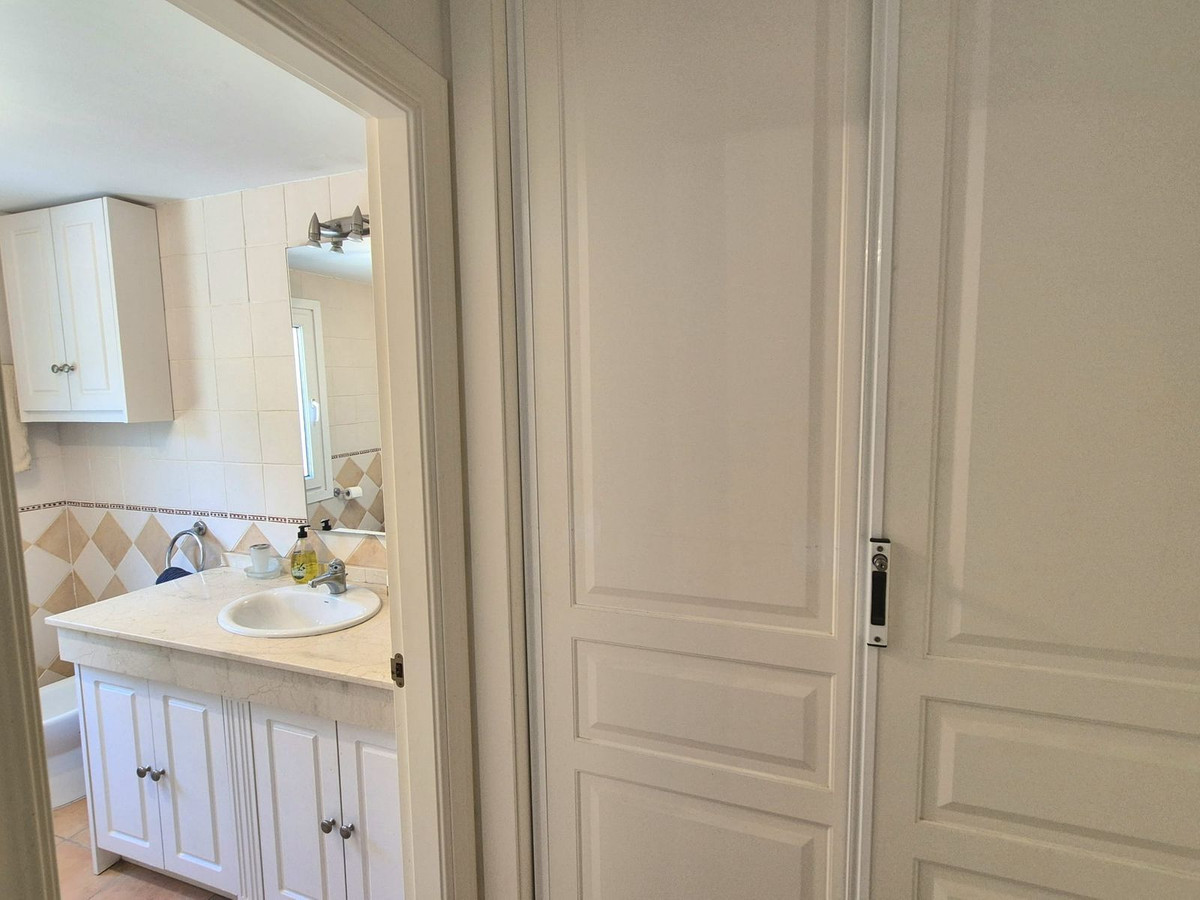 Au deuxième étage se trouve la chambre principale avec deux placards intégrés, la climatisation et une salle de bains privative avec baignoire/douche. Viennent ensuite deux autres chambres doubles, chacune équipée de placards intégrés et de la climatisation, qui partagent une salle de bains complète. Toutes les salles de bains sont dotées de fenêtres.