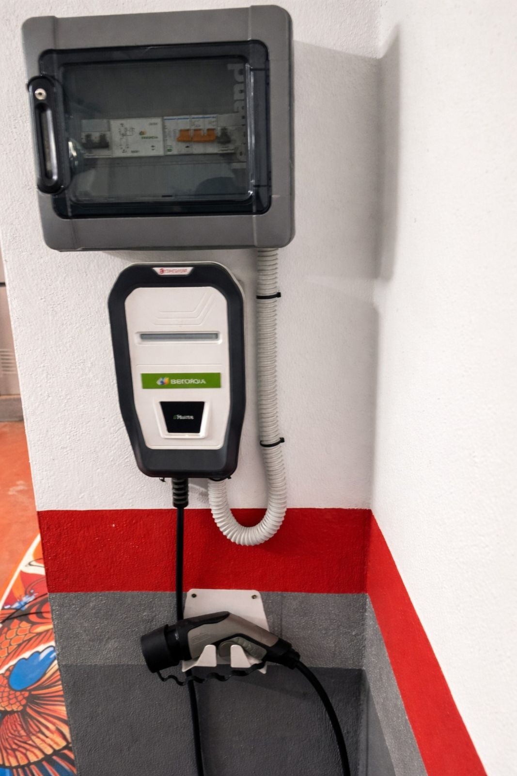 Un emplacement de garage privé est inclus dans le prix, avec possibilité de recharge pour véhicule électrique.