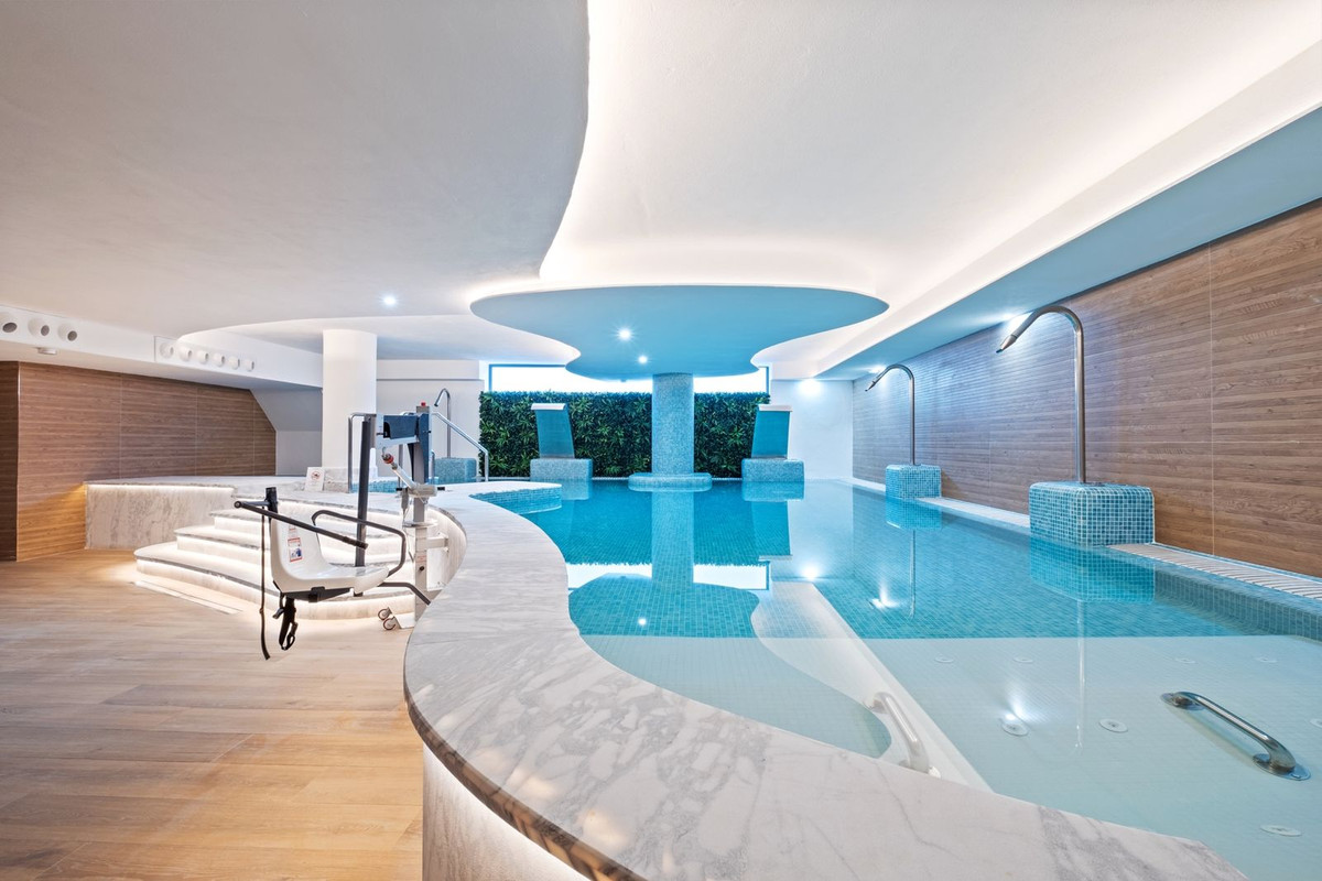 Les résidents bénéficient d'excellentes installations communes, notamment une piscine extérieure, une piscine intérieure, une salle de sport entièrement équipée, un sauna et un espace de baignade relaxant aux eaux turquoise.