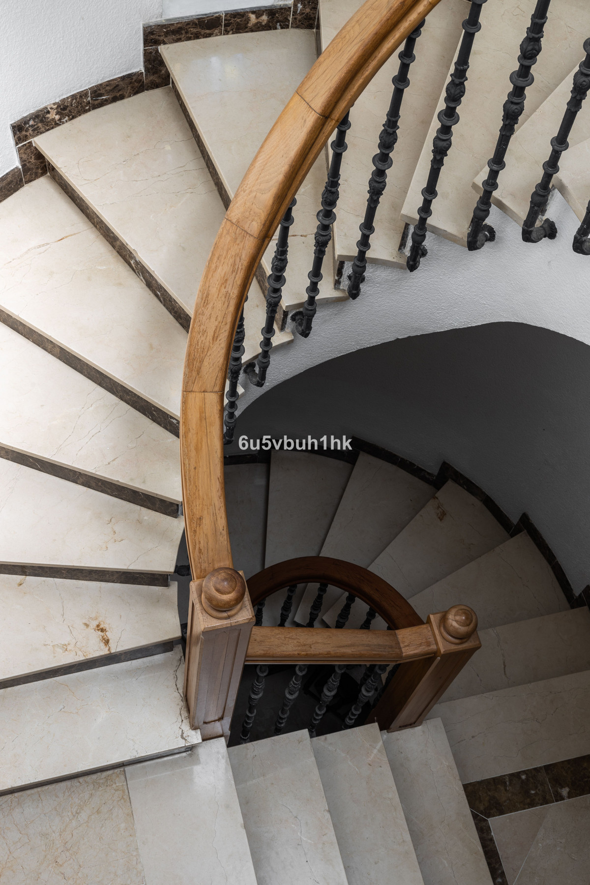Cette luxueuse villa, dotée d'un magnifique jardin tropical et d'une piscine privée, est à voir absolument. Entièrement modernisée, elle est à vendre à El Coto, Fuengirola. En entrant dans la maison, vous découvrirez un vaste hall d'entrée qui s'ouvre sur un magnifique vestibule où se trouve l'escalier sur la droite. Au premier étage, vous trouverez une grande cuisine indépendante avec buanderie attenante, des toilettes invités, une salle à manger et un spectaculaire salon en L avec cheminée et de grandes baies vitrées donnant sur le jardin et la piscine. Le deuxième étage abrite quatre chambres spacieuses avec terrasses offrant de superbes vues. La suite parentale dispose d'une salle de bains privative avec dressing ; une salle de bains est également partagée. Le jardin comprend un espace barbecue, une terrasse et une pelouse arborée d'arbres fruitiers, ainsi qu'une piscine privée. Cette propriété dispose d'un garage double, d'un appartement indépendant pour les invités et d'une grande cave à vin au sous-sol. Idéale pour un investissement locatif ou une famille, elle se situe à proximité immédiate de toutes les commodités : supermarché, pharmacie, restaurant et commerces. Parfaite pour y vivre à l'année ou pour les vacances, elle offre un excellent potentiel locatif.